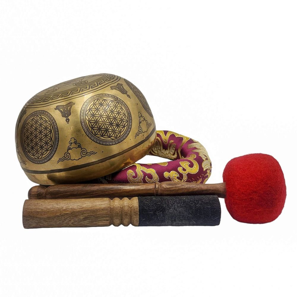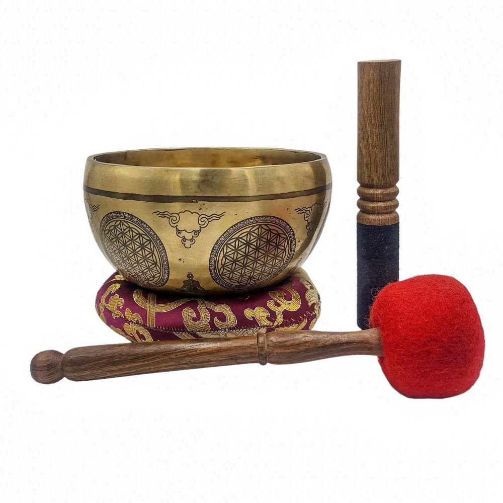 The Jambati Singing Bowl you are purchasing includes a cushion, a wooden playing mallet, and a felt-hitting mallet for playing the bowl. If you require additional accessories, you can browse the options above and purchase them separately. Should you have any further questions or need assistance, please don't hesitate to let us know. Read More