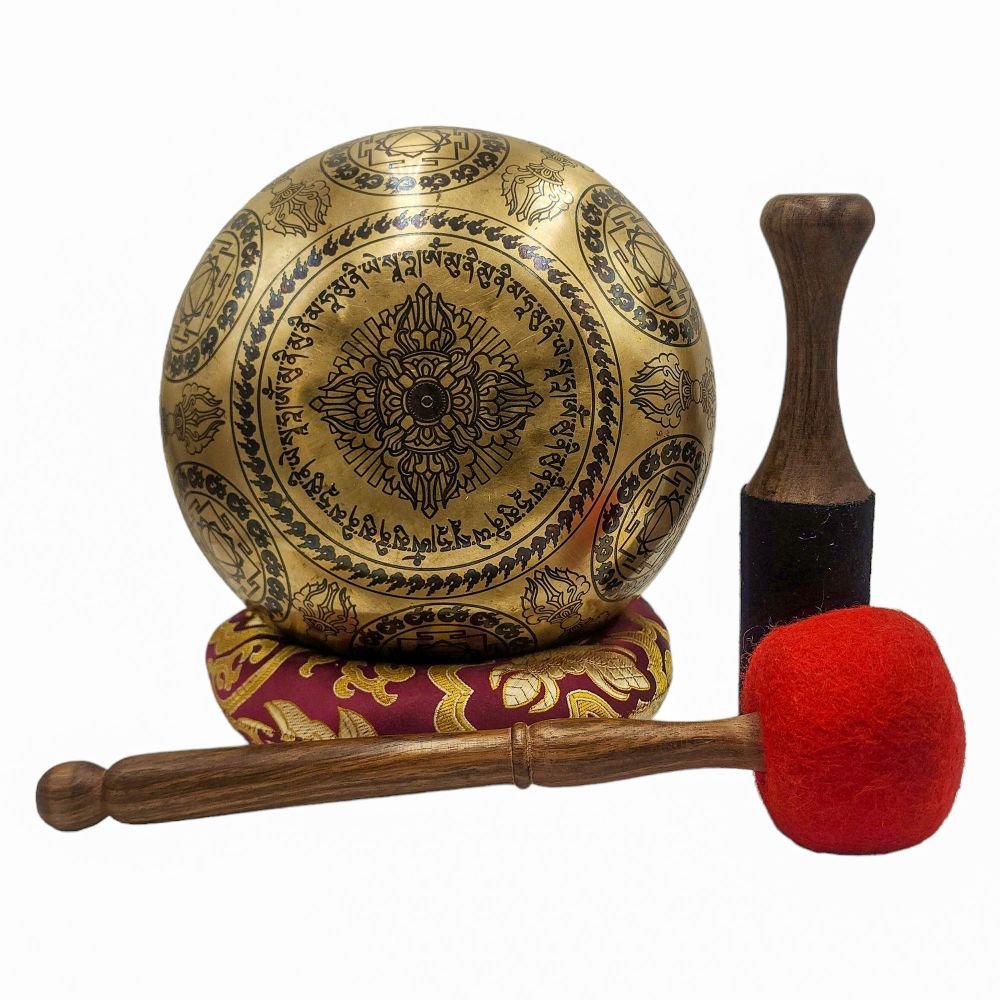 Singing Bowl, Buddhist Hand Beaten, with Manjushree Carved Inside, Select Accessories |