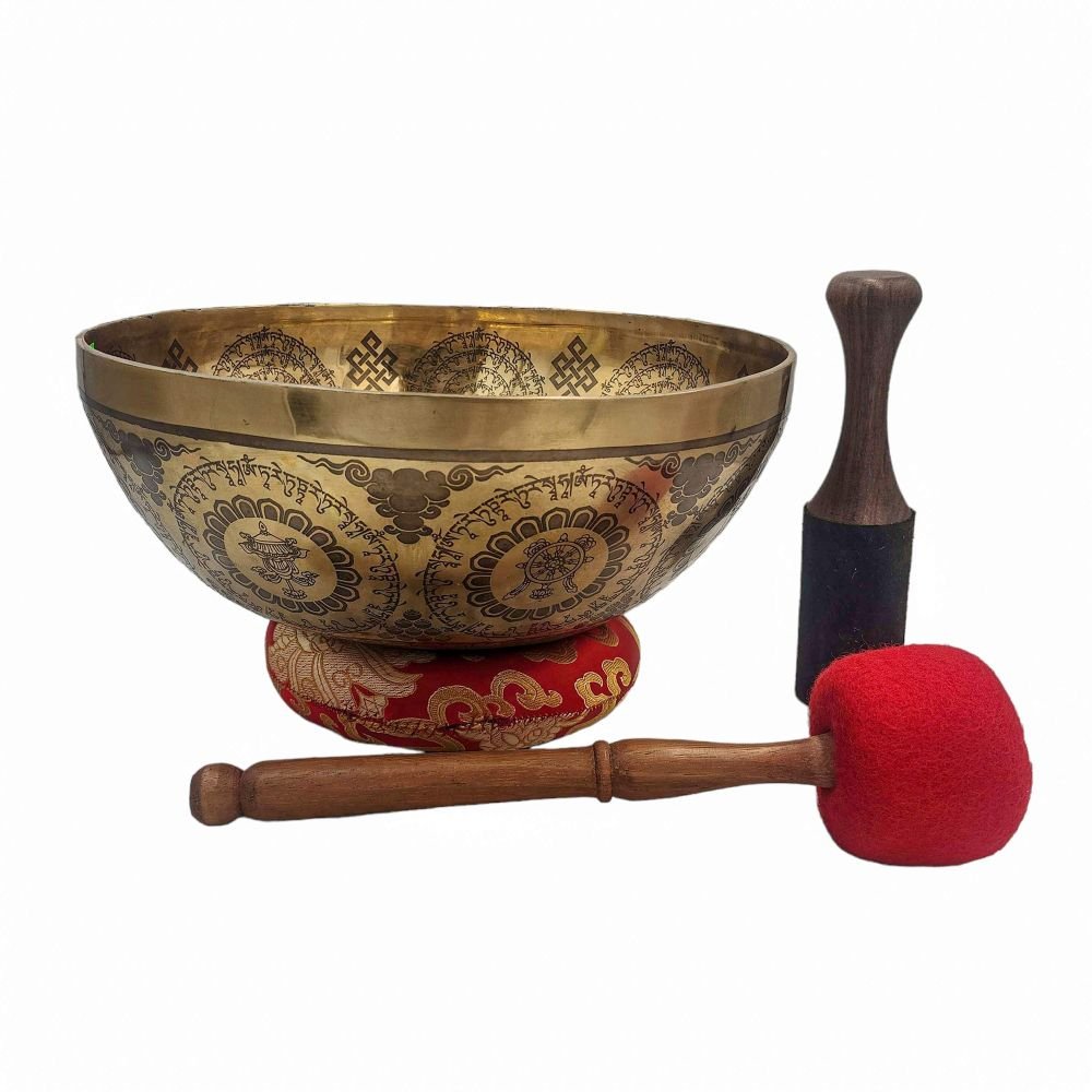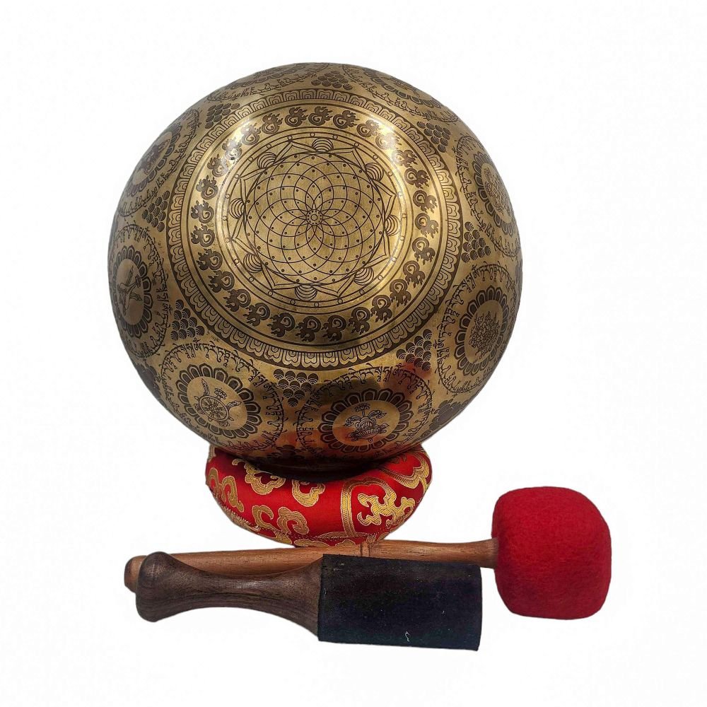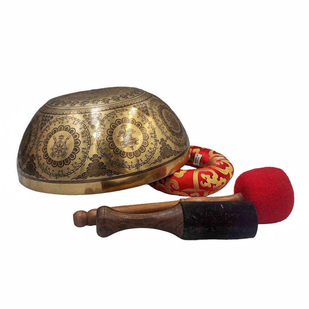 Singing Bowl, Buddhist Hand Beaten, with Green Tara Carved Inside, Select Accessories |