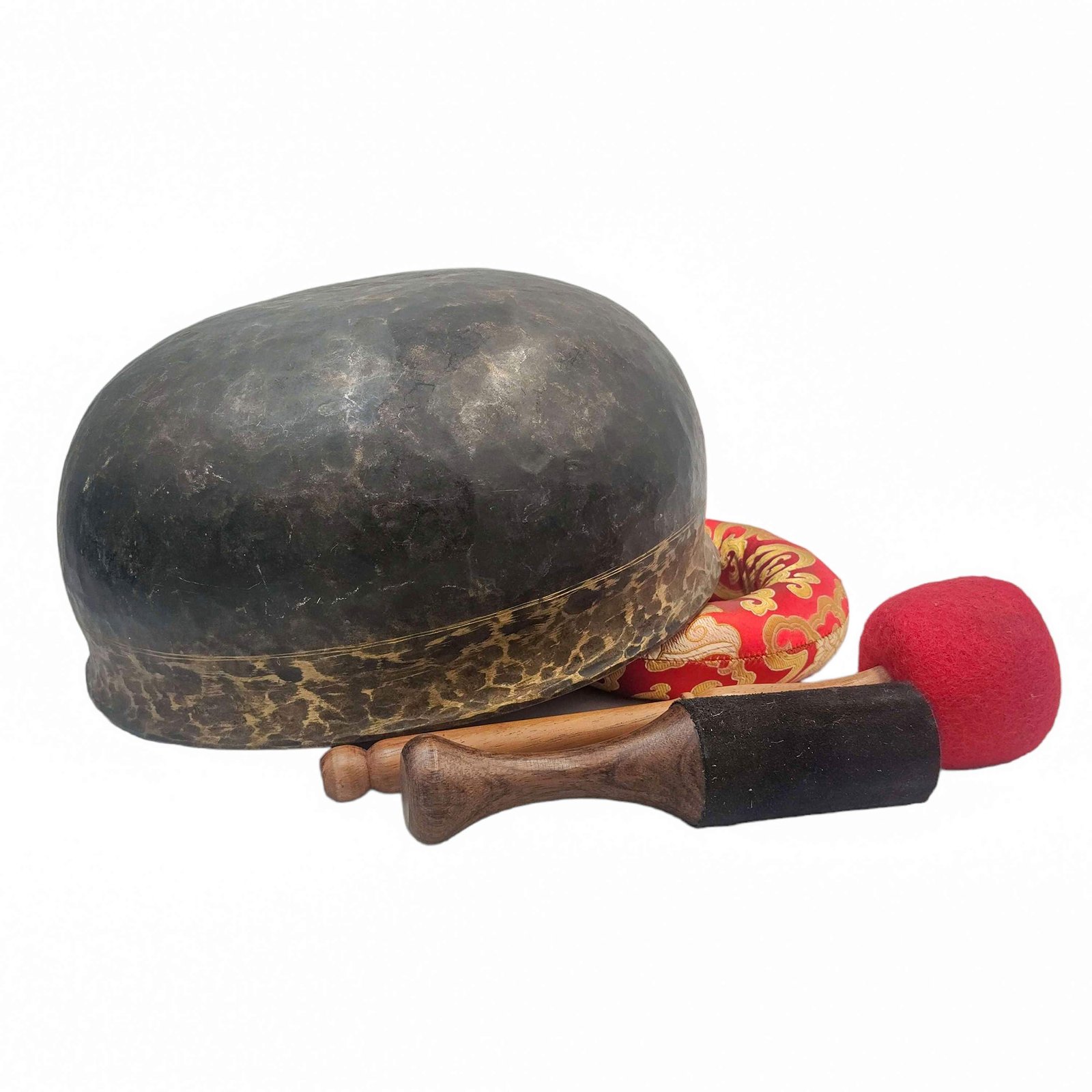 The Jambati Singing Bowl you are purchasing includes a cushion, a wooden playing mallet, and a felt-hitting mallet for playing the bowl. If you require additional accessories, you can browse the options above and purchase them separately. Should you have any further questions or need assistance, please don't hesitate to let us know. Read More