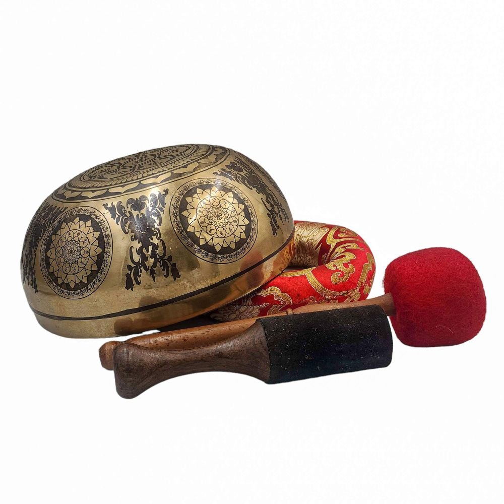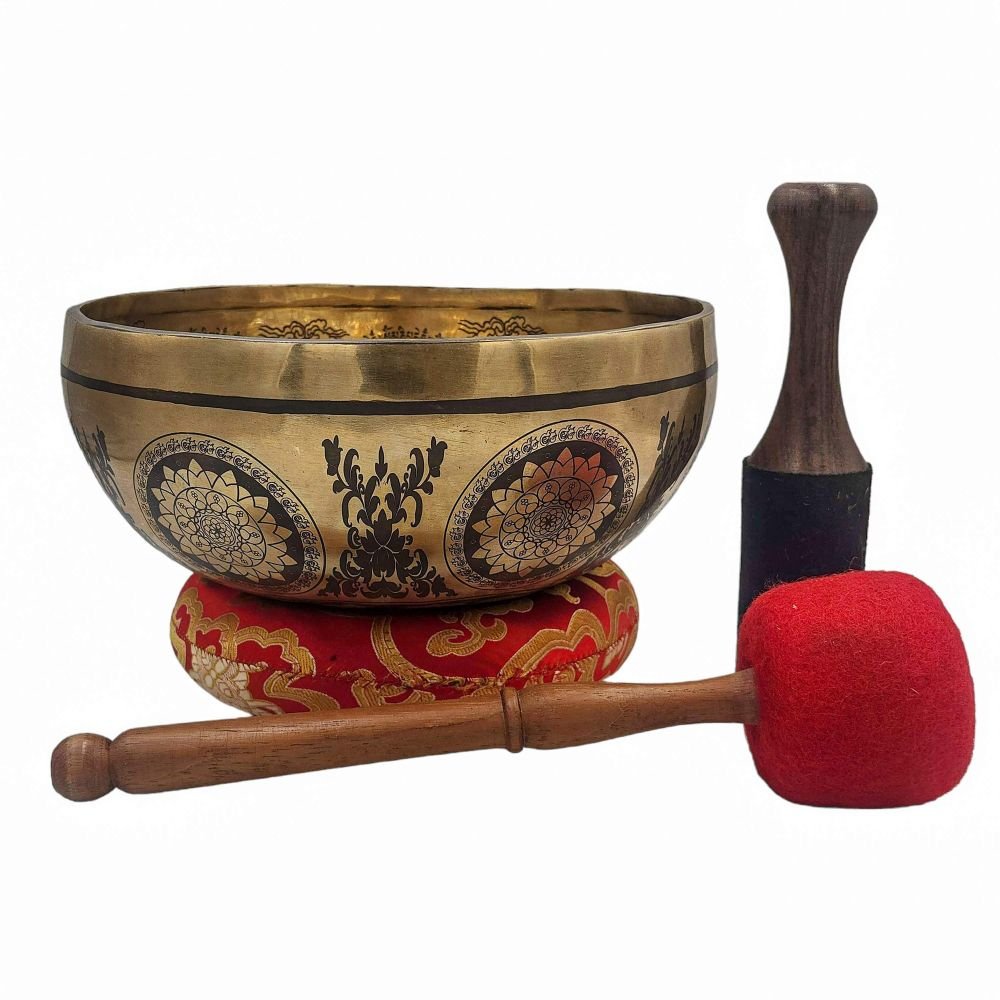 Singing Bowl, Buddhist Hand Beaten, with Mahakala Carved Inside, Select Accessories |