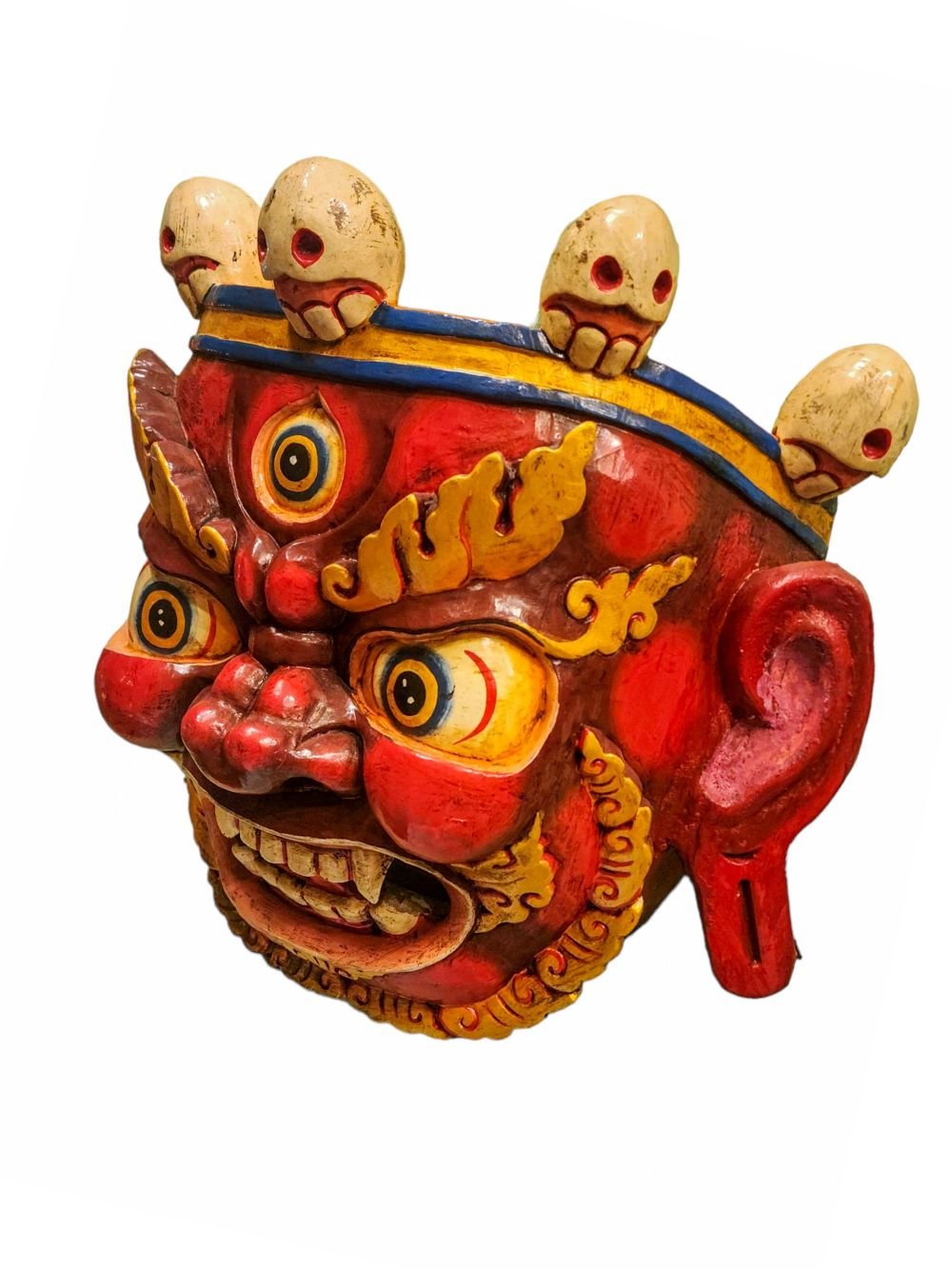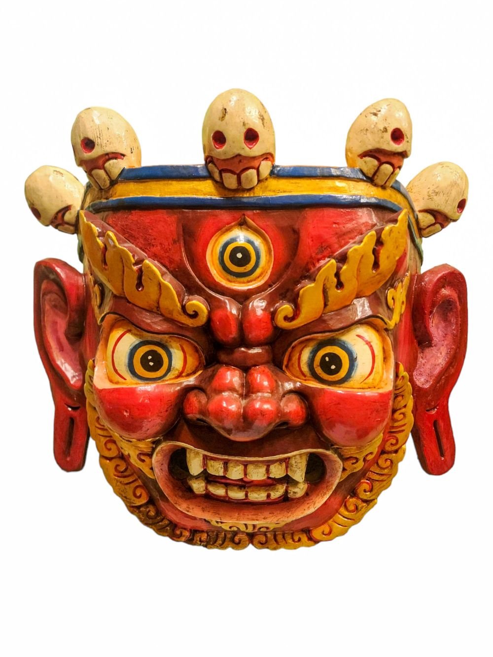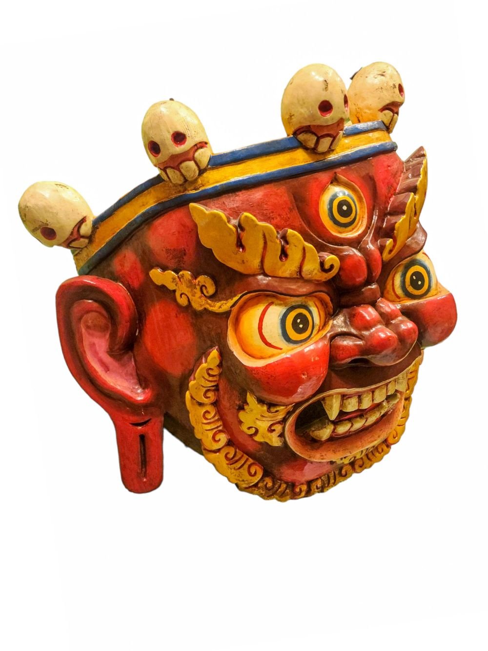 Bhairav, Handmade Wooden Mask, Wall Hanging, Painted, Poplar Wood , Fierce protector, destroys obstacles, guards the Dharma