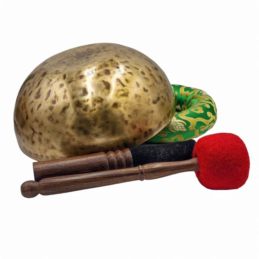 The use of handmade bronze singing bowls in healing, meditation, and chakra balancing is based on the idea that sound can have a profound impact on the body and mind. When played, the bowls produce a rich, harmonious sound that is said to stimulate the chakras and bring balance to the body's energy centers. The sounds produced by the singing bowl are believed to help calm the mind, reduce stress, and promote relaxation, making them a valuable tool in meditation and mindfulness practices.