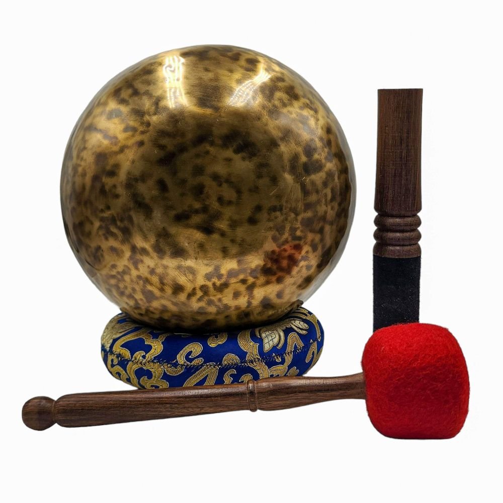 The use of handmade bronze singing bowls in healing, meditation, and chakra balancing is based on the idea that sound can have a profound impact on the body and mind. When played, the bowls produce a rich, harmonious sound that is said to stimulate the chakras and bring balance to the body's energy centers. The sounds produced by the singing bowl are believed to help calm the mind, reduce stress, and promote relaxation, making them a valuable tool in meditation and mindfulness practices.