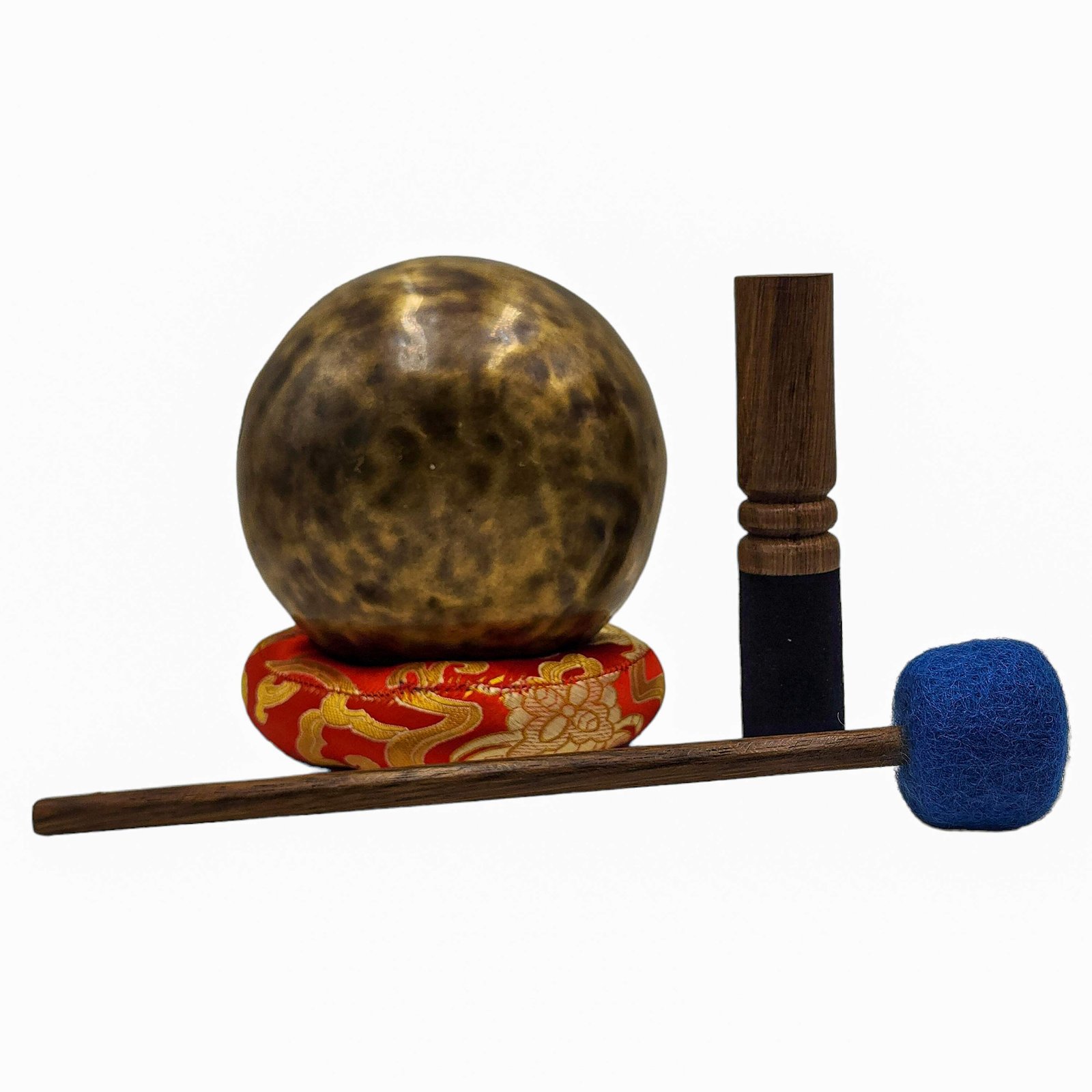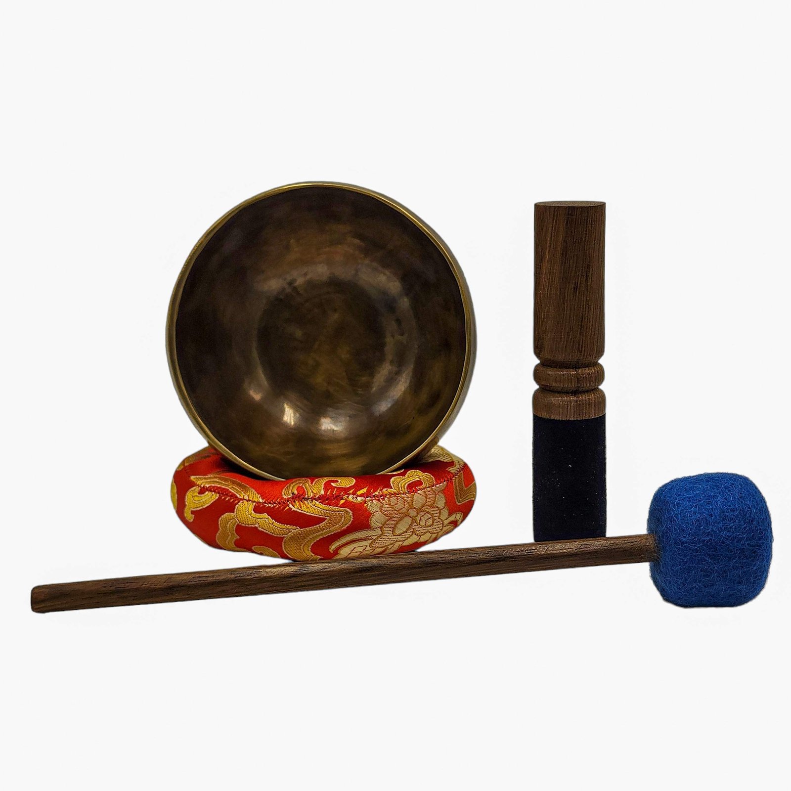 The Jambati Singing Bowl you are purchasing includes a cushion, a wooden playing mallet, and a felt-hitting mallet for playing the bowl. If you require additional accessories, you can browse the options above and purchase them separately. Should you have any further questions or need assistance, please don't hesitate to let us know. Read More