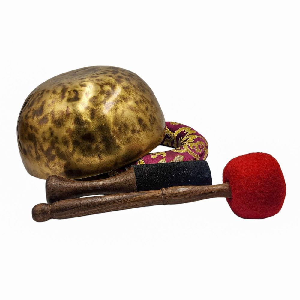 The use of handmade bronze singing bowls in healing, meditation, and chakra balancing is based on the idea that sound can have a profound impact on the body and mind. When played, the bowls produce a rich, harmonious sound that is said to stimulate the chakras and bring balance to the body's energy centers. The sounds produced by the singing bowl are believed to help calm the mind, reduce stress, and promote relaxation, making them a valuable tool in meditation and mindfulness practices.