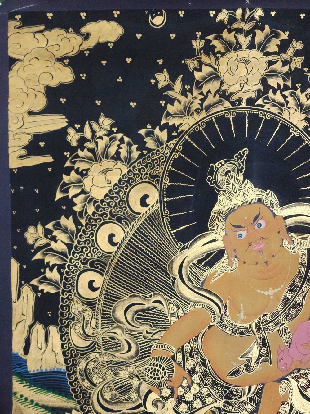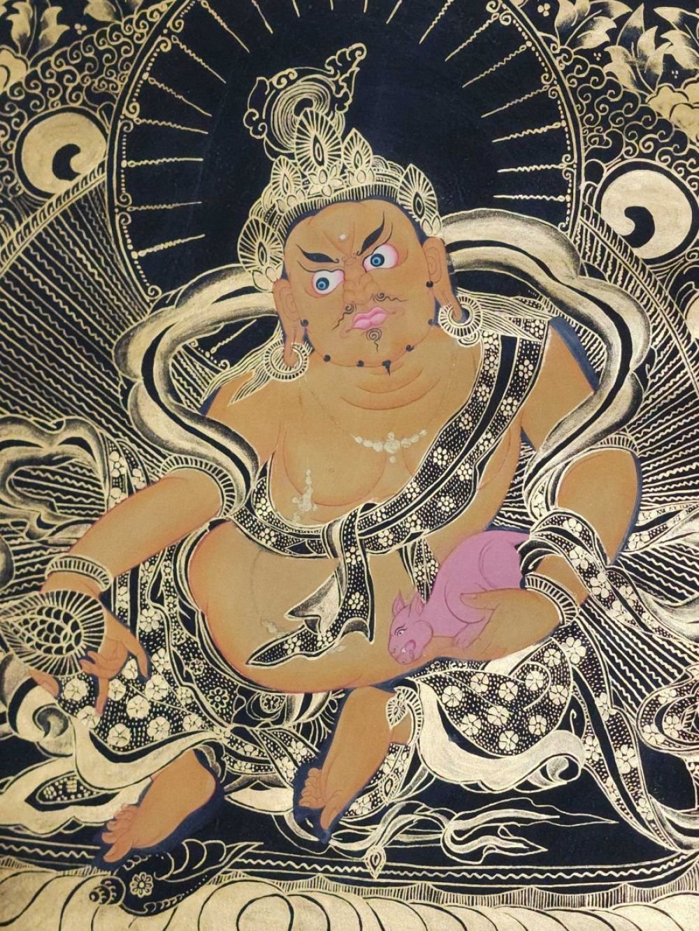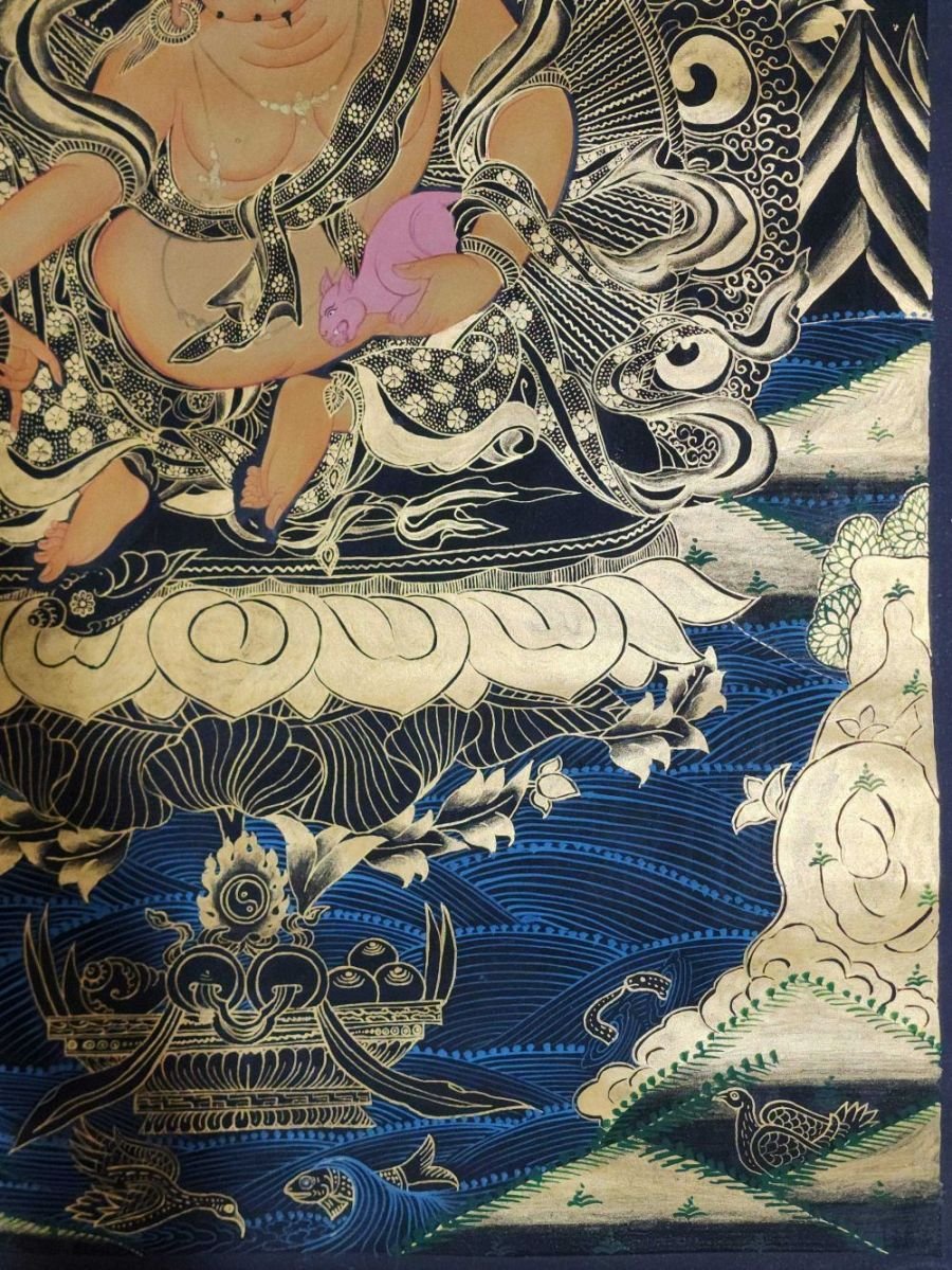 Yellow Jambhala Thangka, Buddhist Traditional Painting, Hand Painted , fostering generosity and abundance