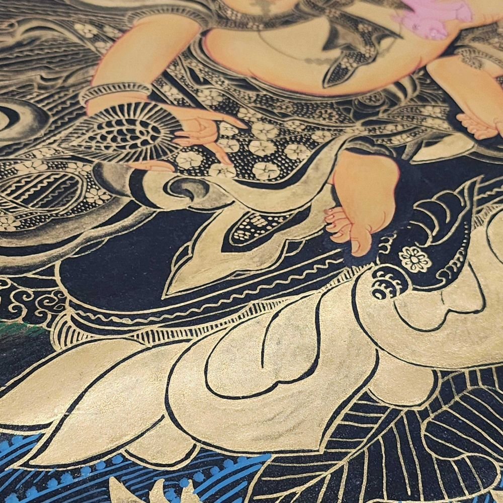 A thangka, also known as tangka, thanka, or tanka, is a vibrant and intricate Tibetan Buddhist painting that serves as a visual representation of spiritual teachings. Crafted with meticulous detail on cotton or silk appliqué, thangkas depict a wide range of subjects including Buddhist deities, sacred scenes, mandalas, and narrative stories. These sacred artworks are traditionally kept unframed and rolled up for storage, resembling ancient scrolls. To protect their delicate nature, thangkas are mounted on textile backings and often adorned with a silk cover on the front. Proper preservation in dry environments is crucial to maintain the integrity and longevity of the silk. Read More