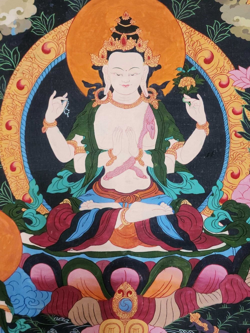 Chenrezig Thangka, Buddhist Traditional Painting, Hand Painted , Bodhisattva of Compassion, Protector of All Beings