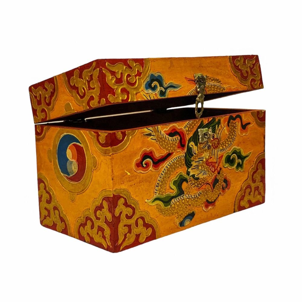 Spiritual Use: In Tibetan culture, these boxes may also be used in religious settings to store sacred objects, texts, or ritual items, preserving them in a manner that respects their spiritual significance.
