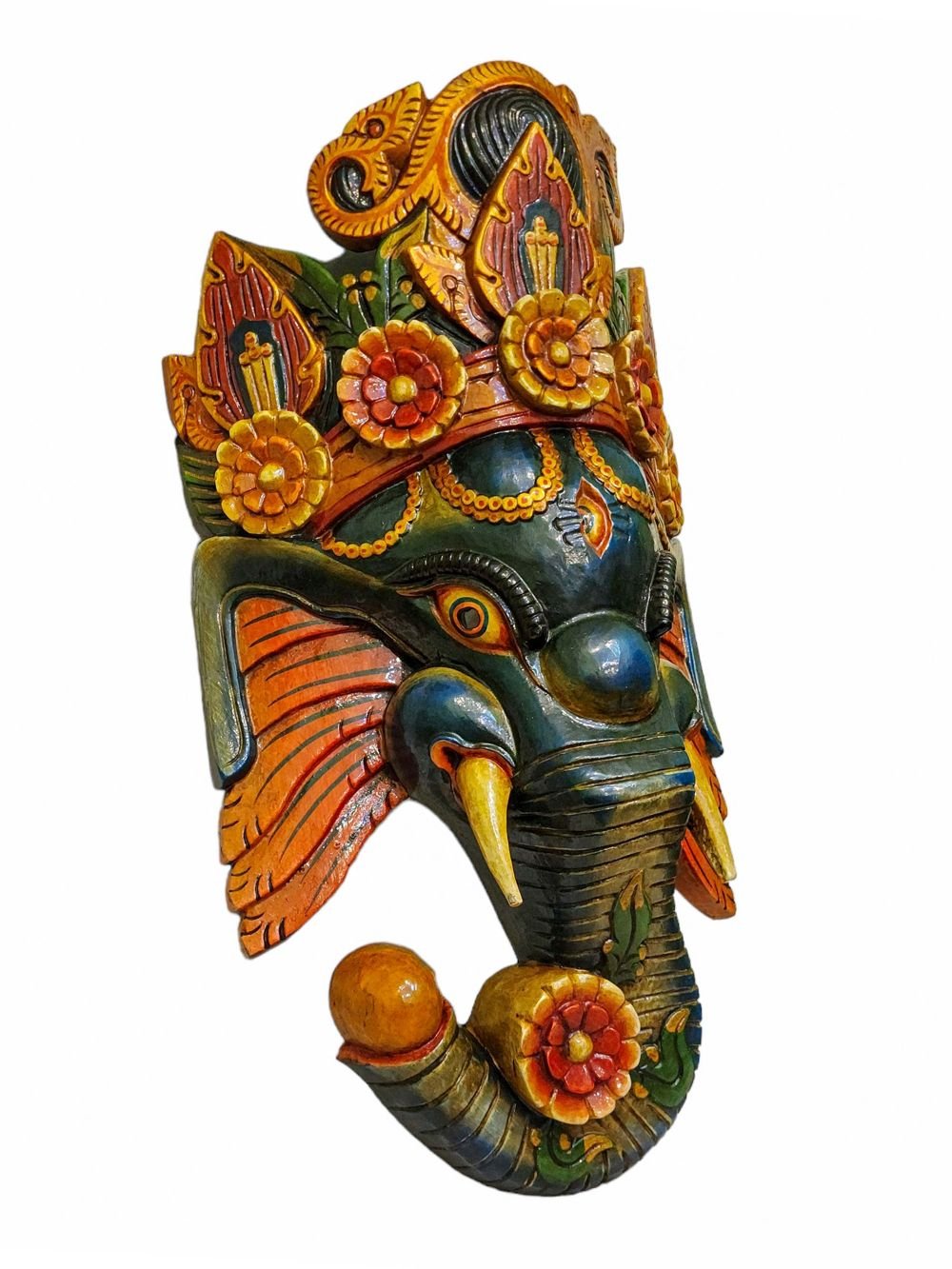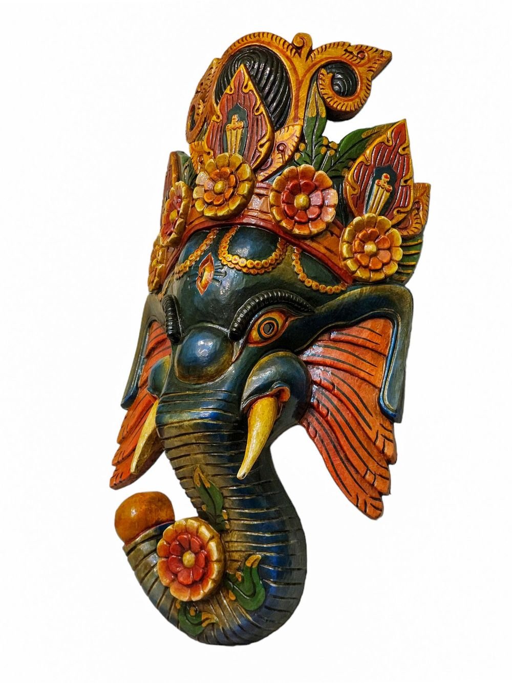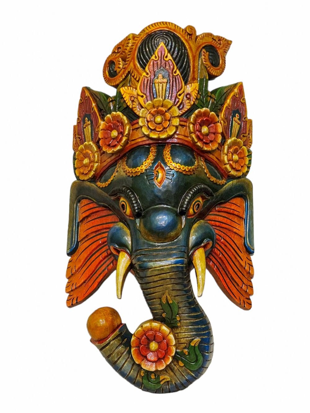 Ganesh, Handmade Wooden Mask, Wall Hanging, Painted, Poplar Wood , Remover of Obstacles, God of Wisdom and New Beginnings