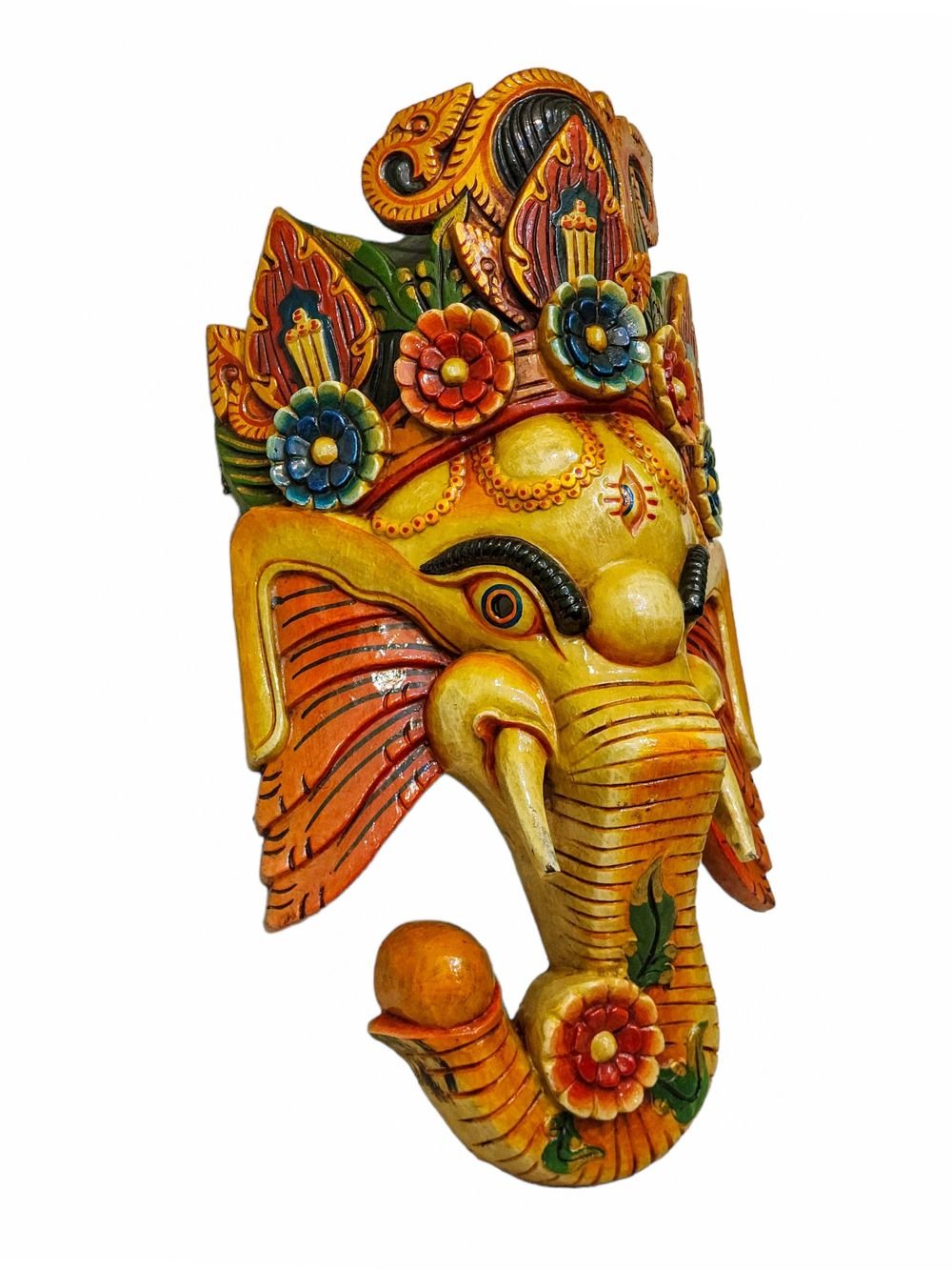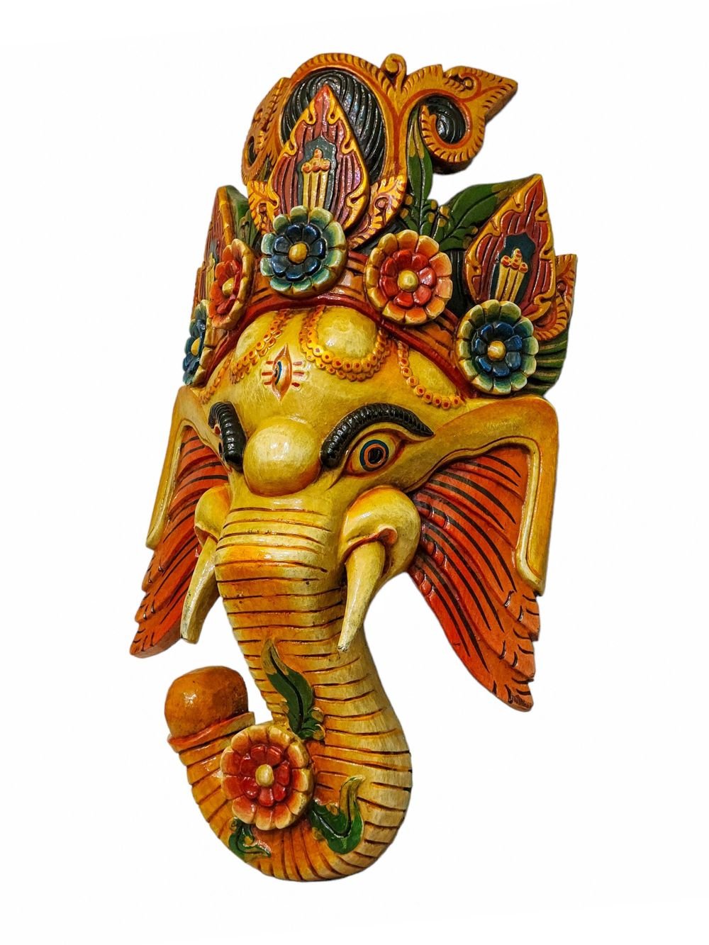 Ganesh, Handmade Wooden Mask, Wall Hanging, Painted, Poplar Wood , Remover of Obstacles, God of Wisdom and New Beginnings