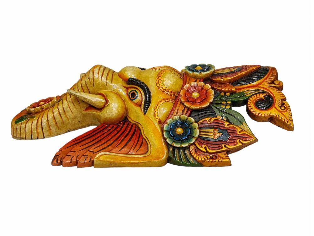 this Ganesh mask is Nepali handmade mask and we are Introducing our exquisite collection of Nepali handmade hand-carved wooden Buddhist masks and wall hangings, meticulously crafted by skilled artisans. Each piece in this collection reflects the rich cultural heritage and spiritual significance of Nepal. These masks and wall hangings are not just decorative pieces but hold deep symbolic meaning, making them perfect for adding an authentic touch to your living spaces or meditation rooms. Read More