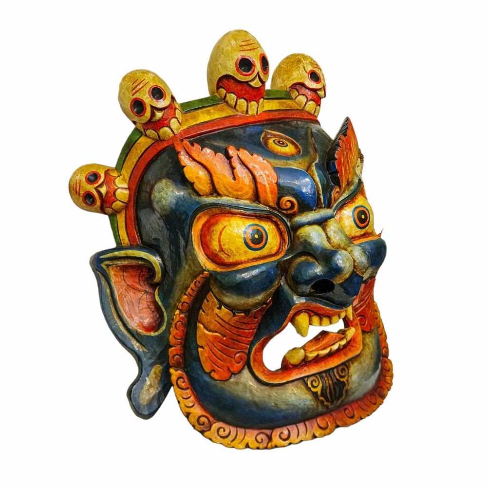 Bhairav, Handmade Wooden Mask, Wall Hanging, Painted, Poplar Wood , Fierce protector, destroys obstacles, guards the Dharma