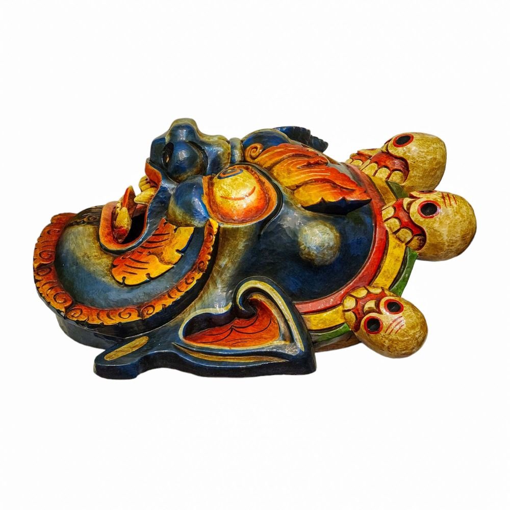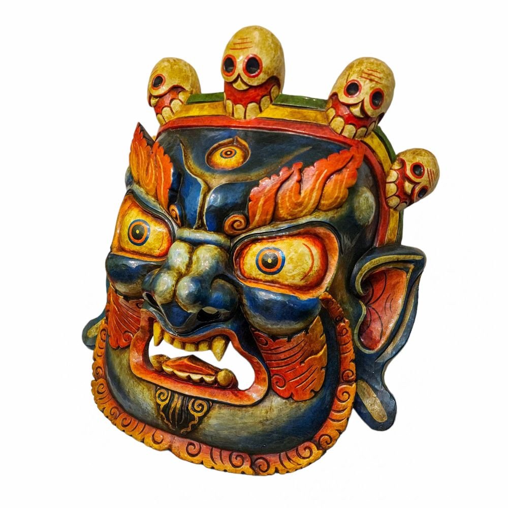 this Mahakala Black mask is Nepali handmade mask and we are Introducing our exquisite collection of Nepali handmade hand-carved wooden Buddhist masks and wall hangings, meticulously crafted by skilled artisans. Each piece in this collection reflects the rich cultural heritage and spiritual significance of Nepal. These masks and wall hangings are not just decorative pieces but hold deep symbolic meaning, making them perfect for adding an authentic touch to your living spaces or meditation rooms. Read More