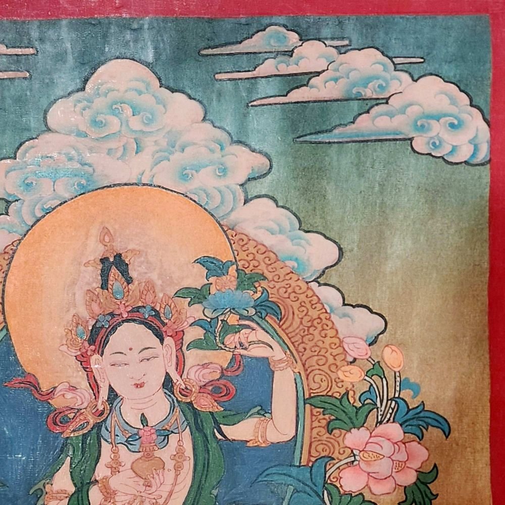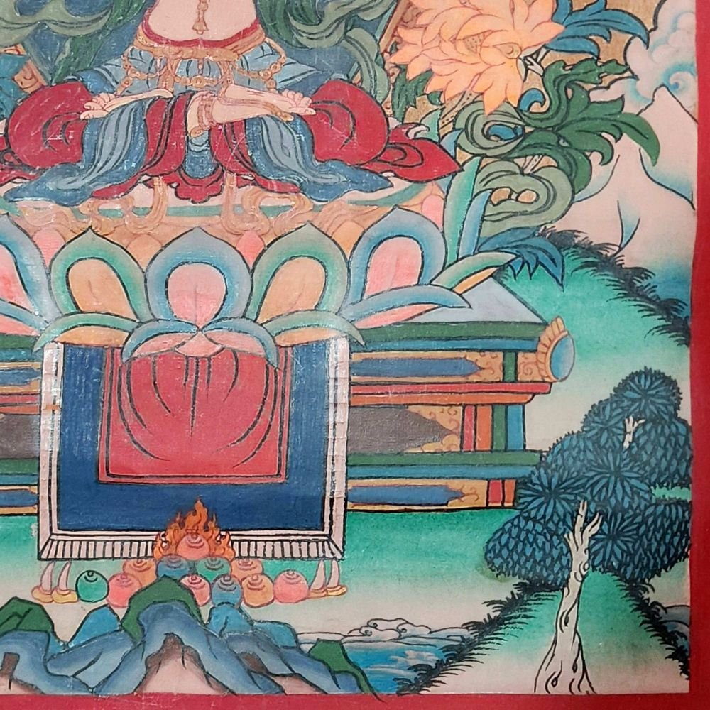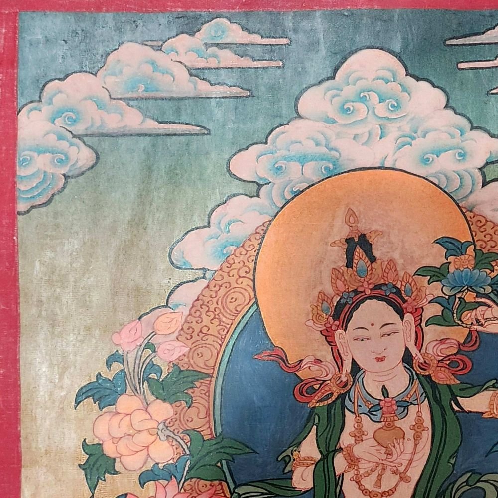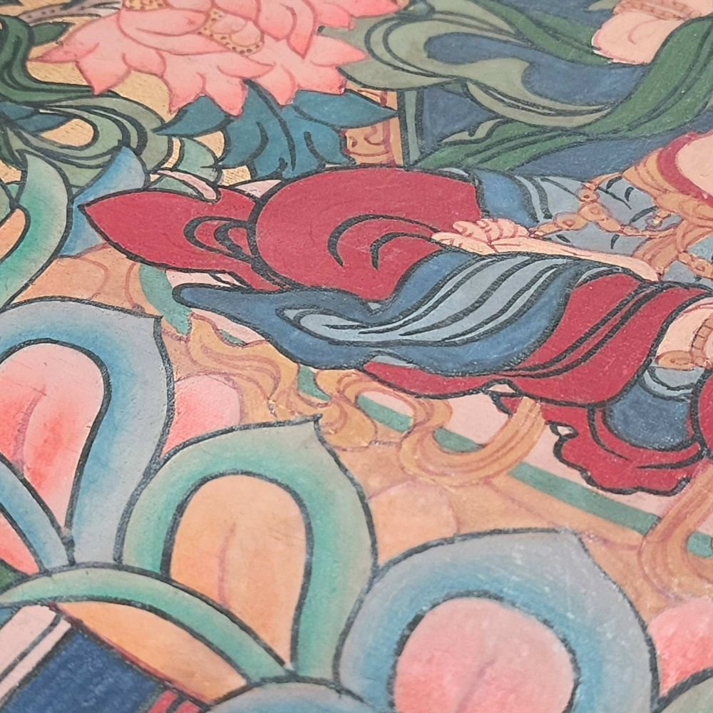 A thangka, also known as tangka, thanka, or tanka, is a vibrant and intricate Tibetan Buddhist painting that serves as a visual representation of spiritual teachings. Crafted with meticulous detail on cotton or silk appliqué, thangkas depict a wide range of subjects including Buddhist deities, sacred scenes, mandalas, and narrative stories. These sacred artworks are traditionally kept unframed and rolled up for storage, resembling ancient scrolls. To protect their delicate nature, thangkas are mounted on textile backings and often adorned with a silk cover on the front. Proper preservation in dry environments is crucial to maintain the integrity and longevity of the silk. Read More