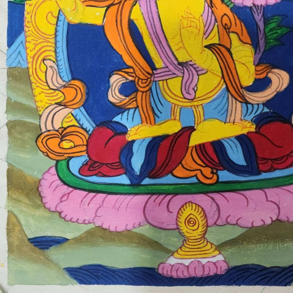 A thangka, also known as tangka, thanka, or tanka, is a vibrant and intricate Tibetan Buddhist painting that serves as a visual representation of spiritual teachings. Crafted with meticulous detail on cotton or silk appliqué, thangkas depict a wide range of subjects including Buddhist deities, sacred scenes, mandalas, and narrative stories. These sacred artworks are traditionally kept unframed and rolled up for storage, resembling ancient scrolls. To protect their delicate nature, thangkas are mounted on textile backings and often adorned with a silk cover on the front. Proper preservation in dry environments is crucial to maintain the integrity and longevity of the silk. Read More
