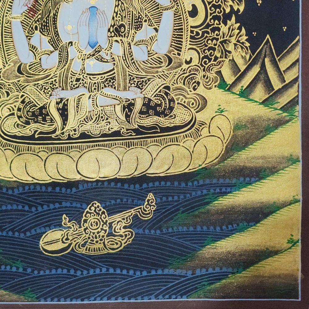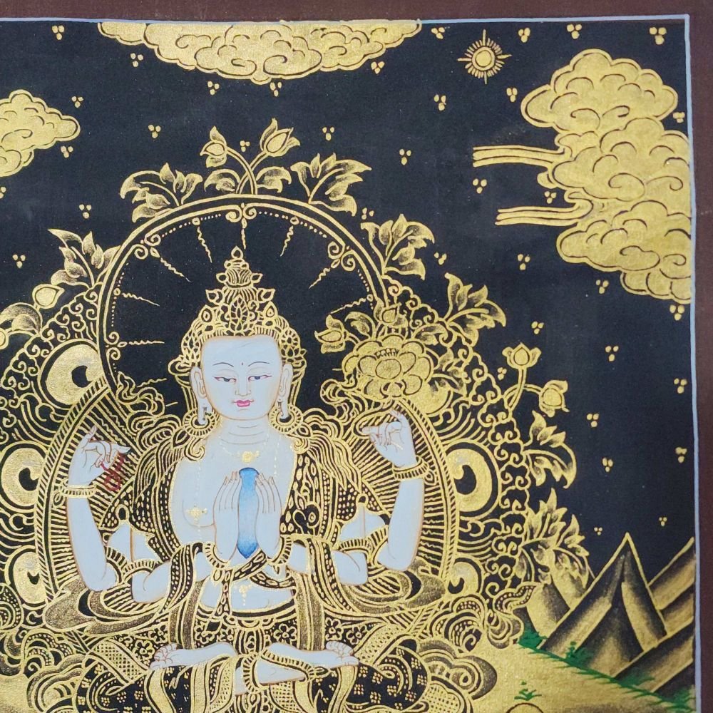 Chenrezig, Buddhist Traditional Painting, Hand Painted , Bodhisattva of Compassion, Protector of All Beings