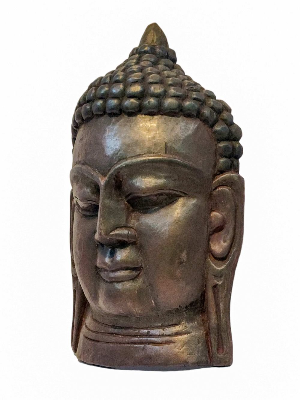 Buddha Head, Handmade Wooden Mask, Wall Hanging, Painted, Poplar Wood , The Awakened One, Attaining Perfect Wisdom, Compassion, and Enlightenment