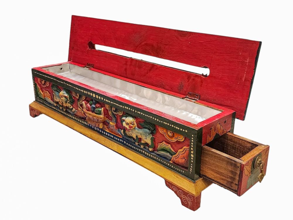 Tibetan Ritual Wooden Incense Burner, Traditional Color Painted , Used to purify the surroundings, symbolizing devotion and the sacred nature of offerings