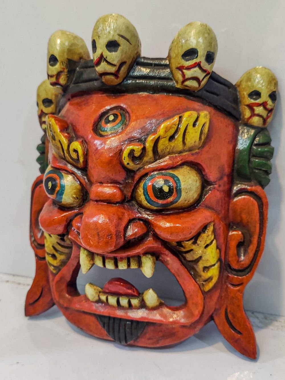 Bhairav, Handmade Wooden Mask, Wall Hanging, Painted Red, Poplar Wood, Mahakala Two Arms , Fierce protector, destroys obstacles, guards the Dharma