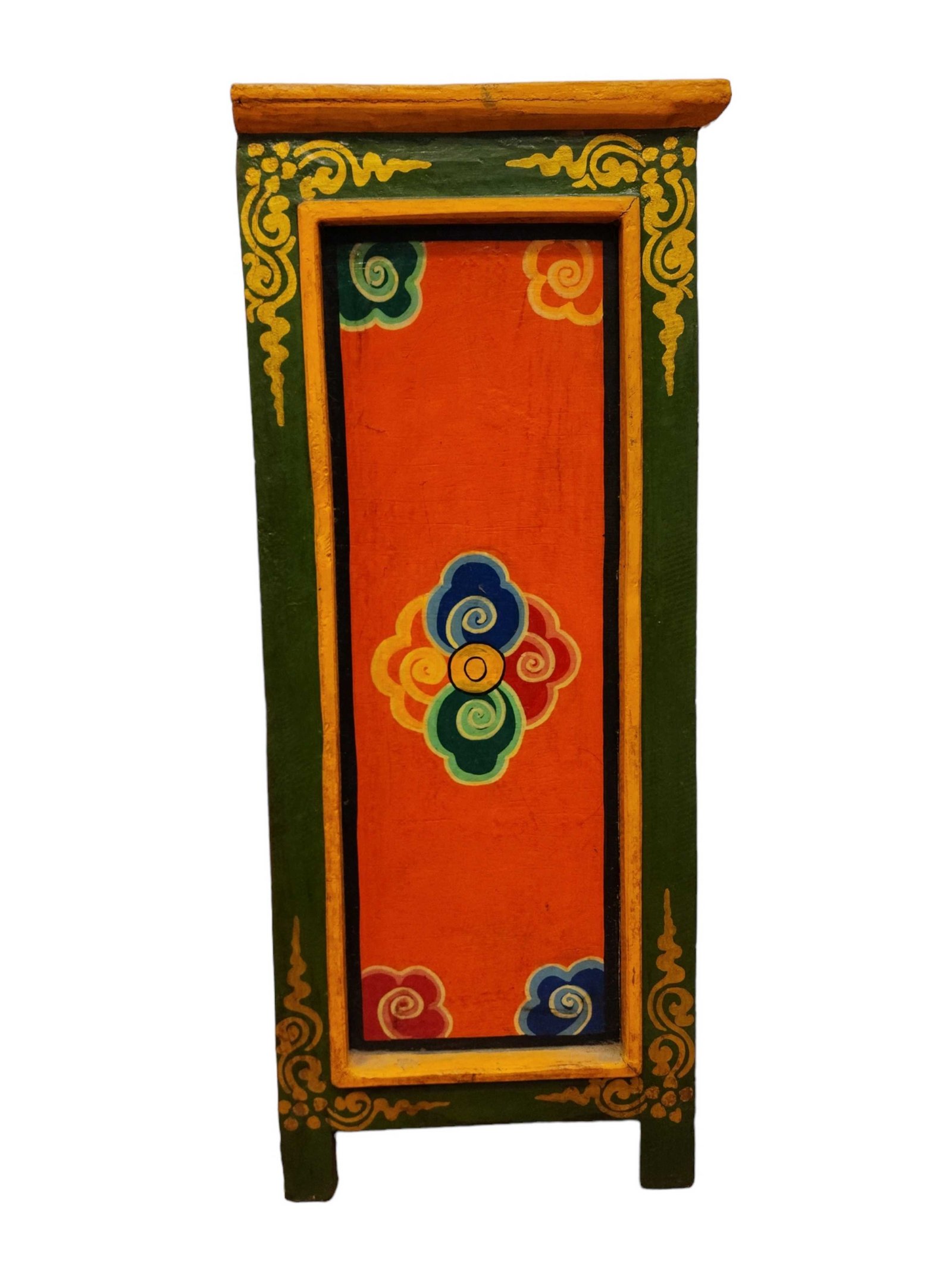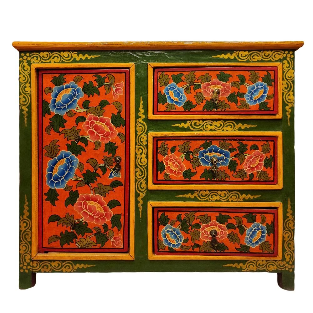 Tibetan Buddhist Cabinet with Three Drawer and One Door Cabinet, Painted |