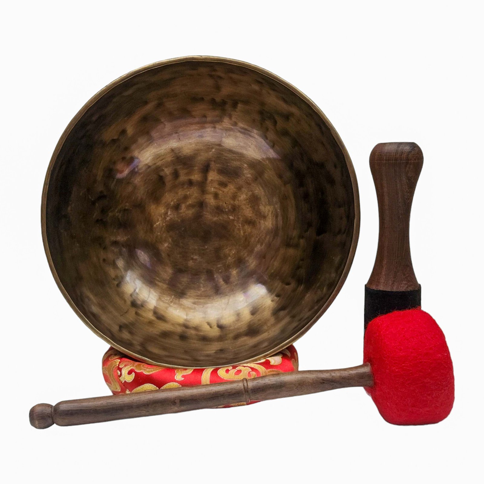The Jambati Singing Bowl you are purchasing includes a cushion, a wooden playing mallet, and a felt-hitting mallet for playing the bowl. If you require additional accessories, you can browse the options above and purchase them separately. Should you have any further questions or need assistance, please don't hesitate to let us know. Read More