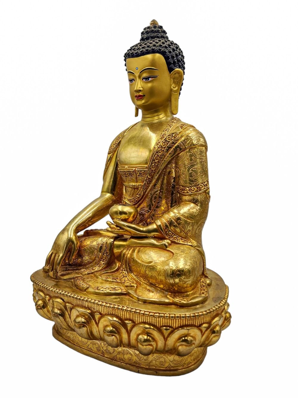 Shakyamuni Buddha, Buddhist Handmade Statue, Face Painted and Gold Plated , The Enlightened One and Teacher of Humanity