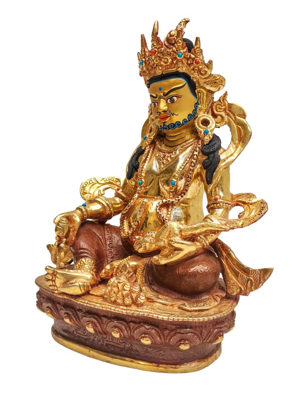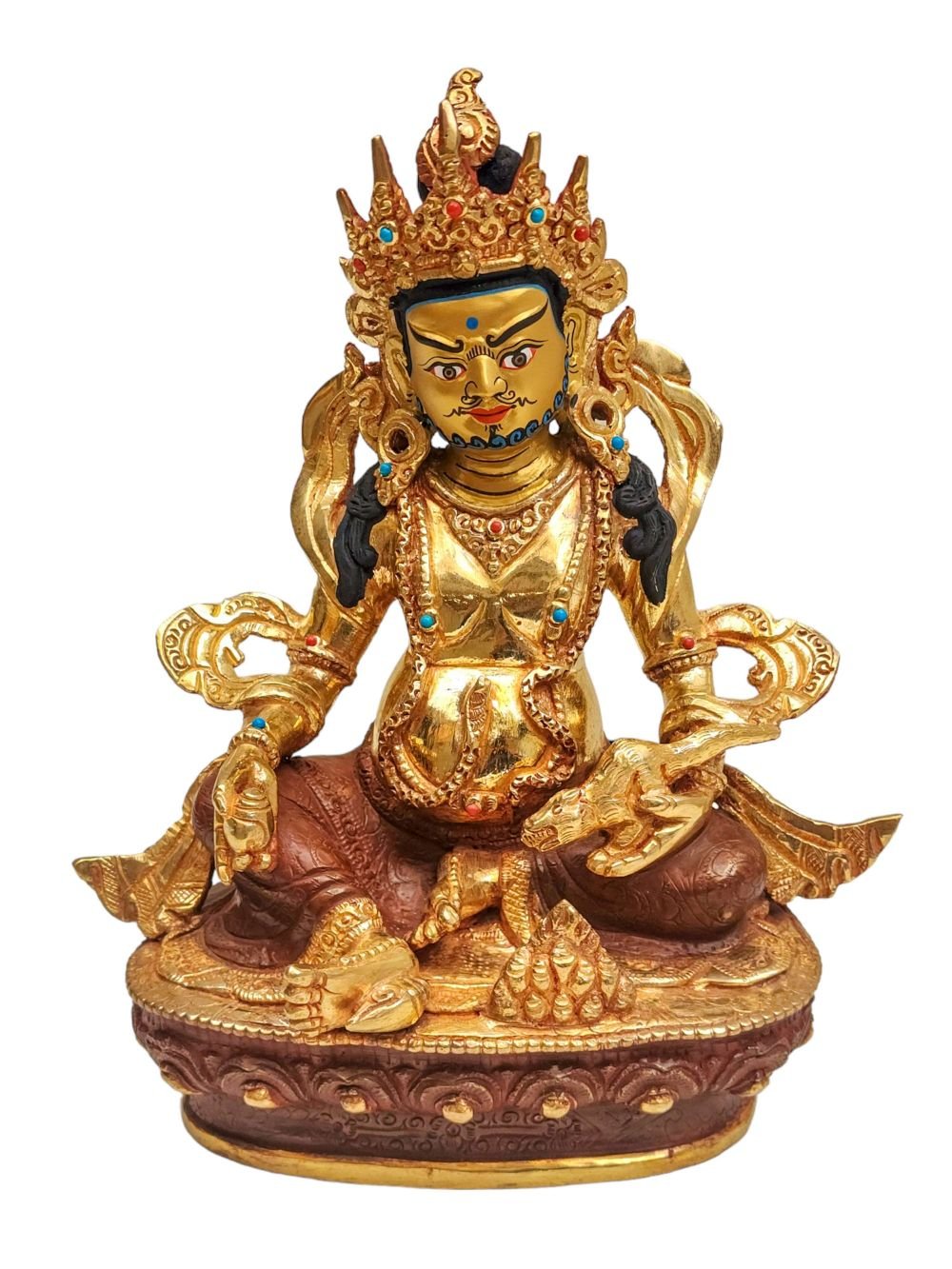 22 cm Yellow Jambhala, Buddhist Handmade Statue, Full Gold Plated, Face Painted, Stone Settingand High Quality