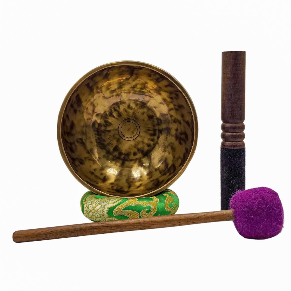 The Jambati Singing Bowl you are purchasing includes a cushion, a wooden playing mallet, and a felt-hitting mallet for playing the bowl. If you require additional accessories, you can browse the options above and purchase them separately. Should you have any further questions or need assistance, please don't hesitate to let us know. Read More