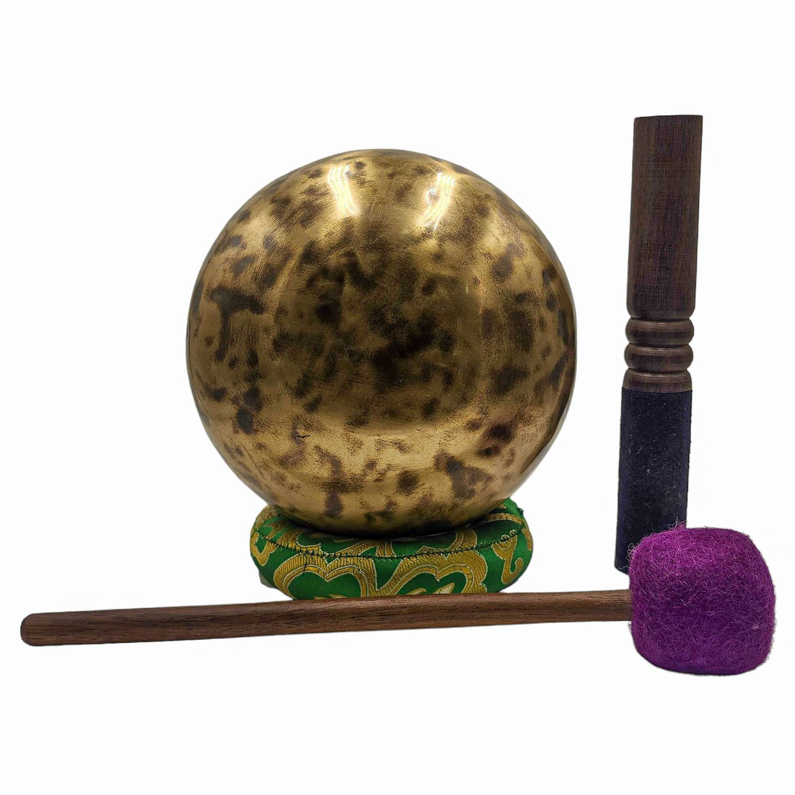The Jambati Singing Bowl you are purchasing includes a cushion, a wooden playing mallet, and a felt-hitting mallet for playing the bowl. If you require additional accessories, you can browse the options above and purchase them separately. Should you have any further questions or need assistance, please don't hesitate to let us know. Read More