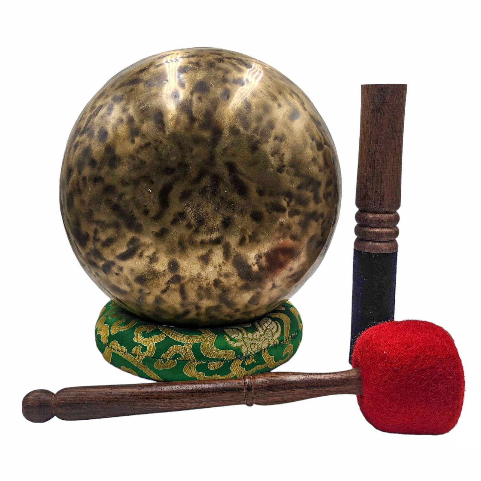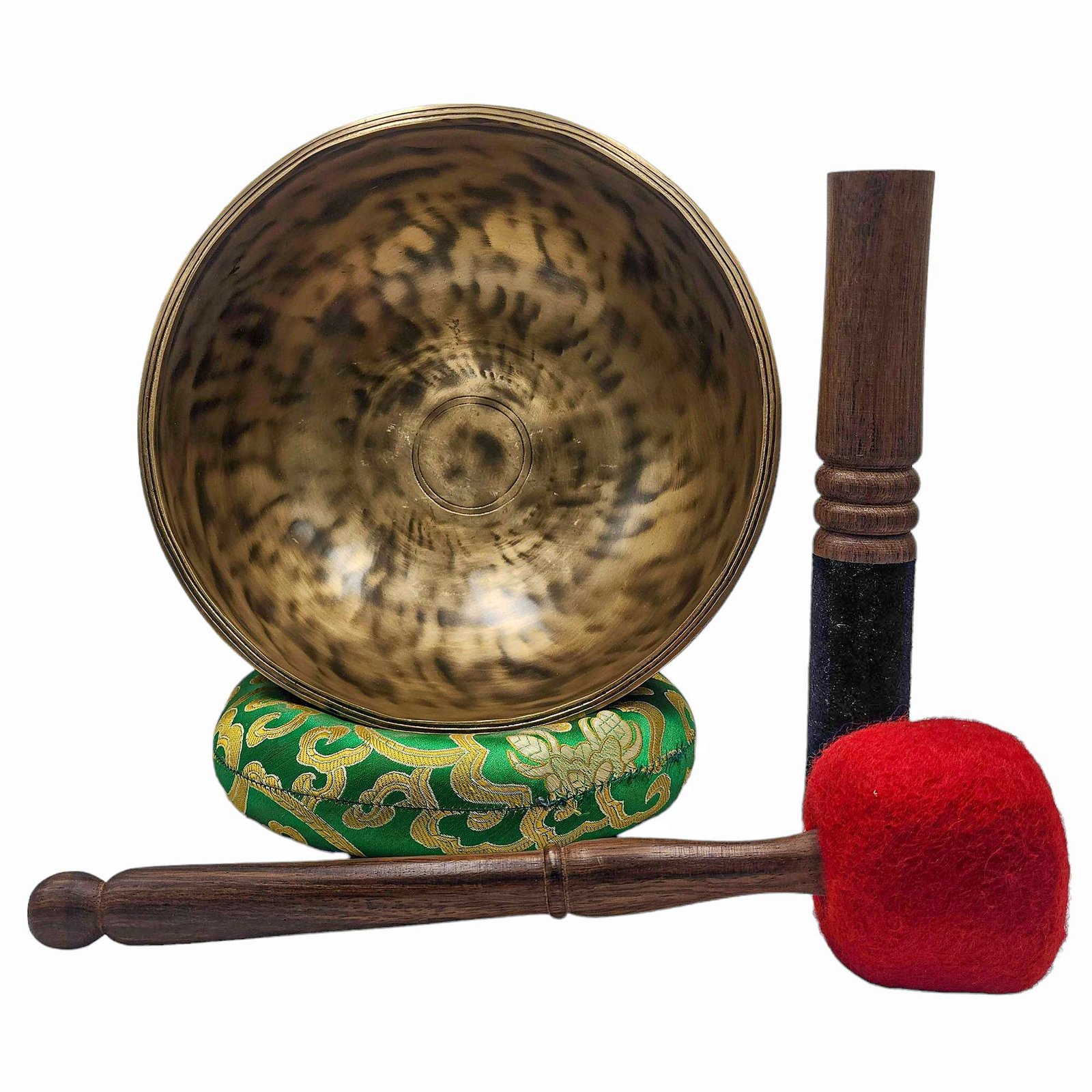 The Jambati Singing Bowl you are purchasing includes a cushion, a wooden playing mallet, and a felt-hitting mallet for playing the bowl. If you require additional accessories, you can browse the options above and purchase them separately. Should you have any further questions or need assistance, please don't hesitate to let us know. Read More