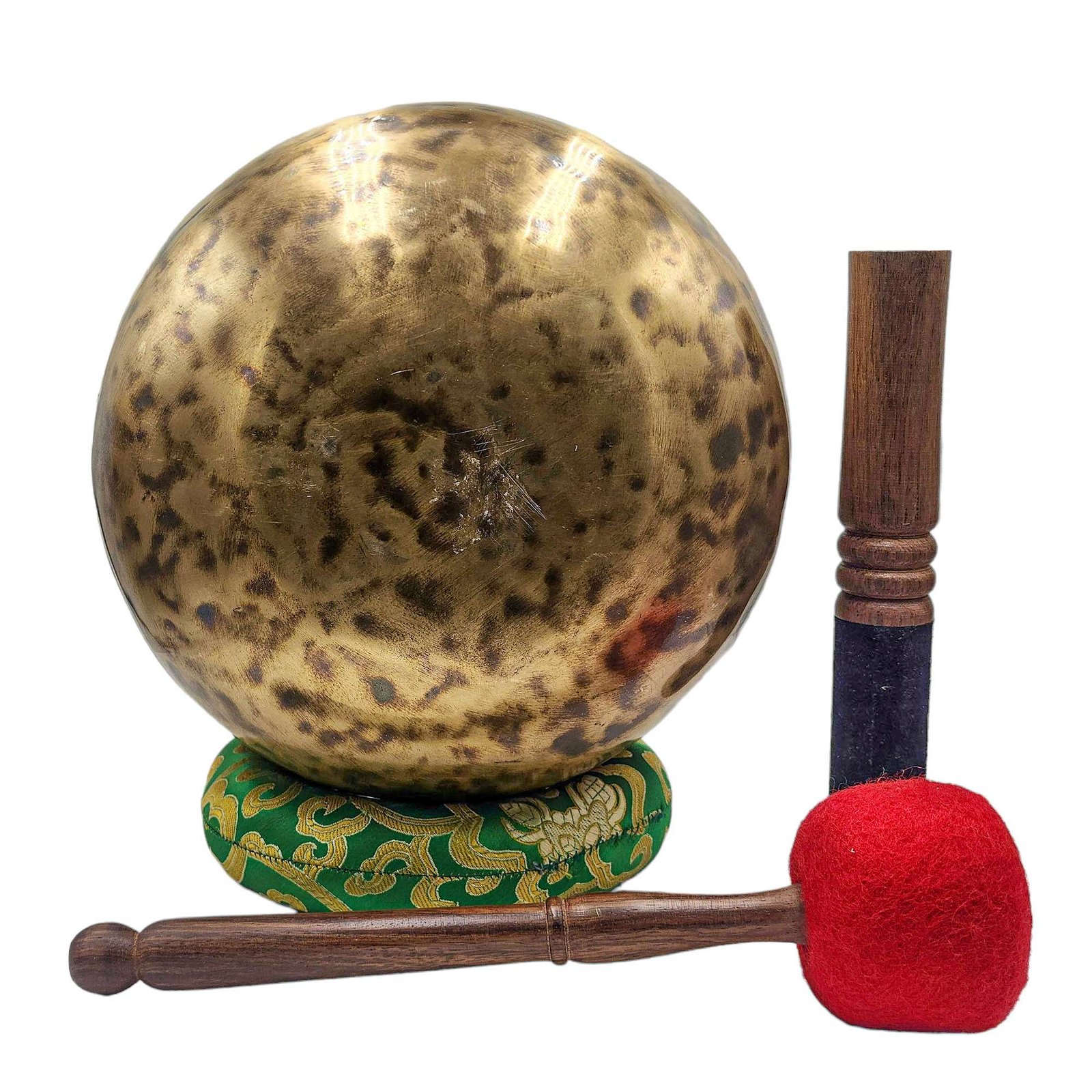 The Jambati Singing Bowl you are purchasing includes a cushion, a wooden playing mallet, and a felt-hitting mallet for playing the bowl. If you require additional accessories, you can browse the options above and purchase them separately. Should you have any further questions or need assistance, please don't hesitate to let us know. Read More