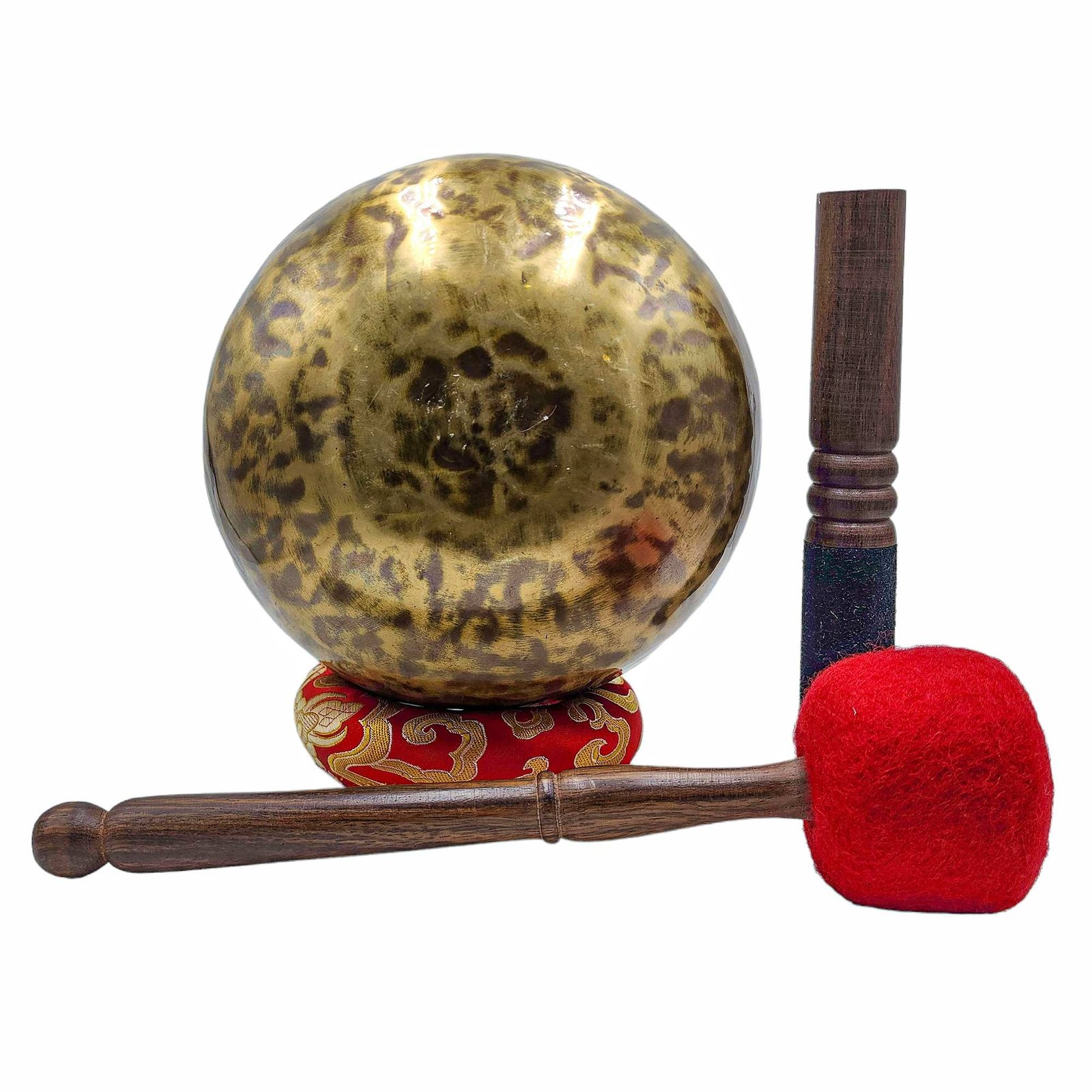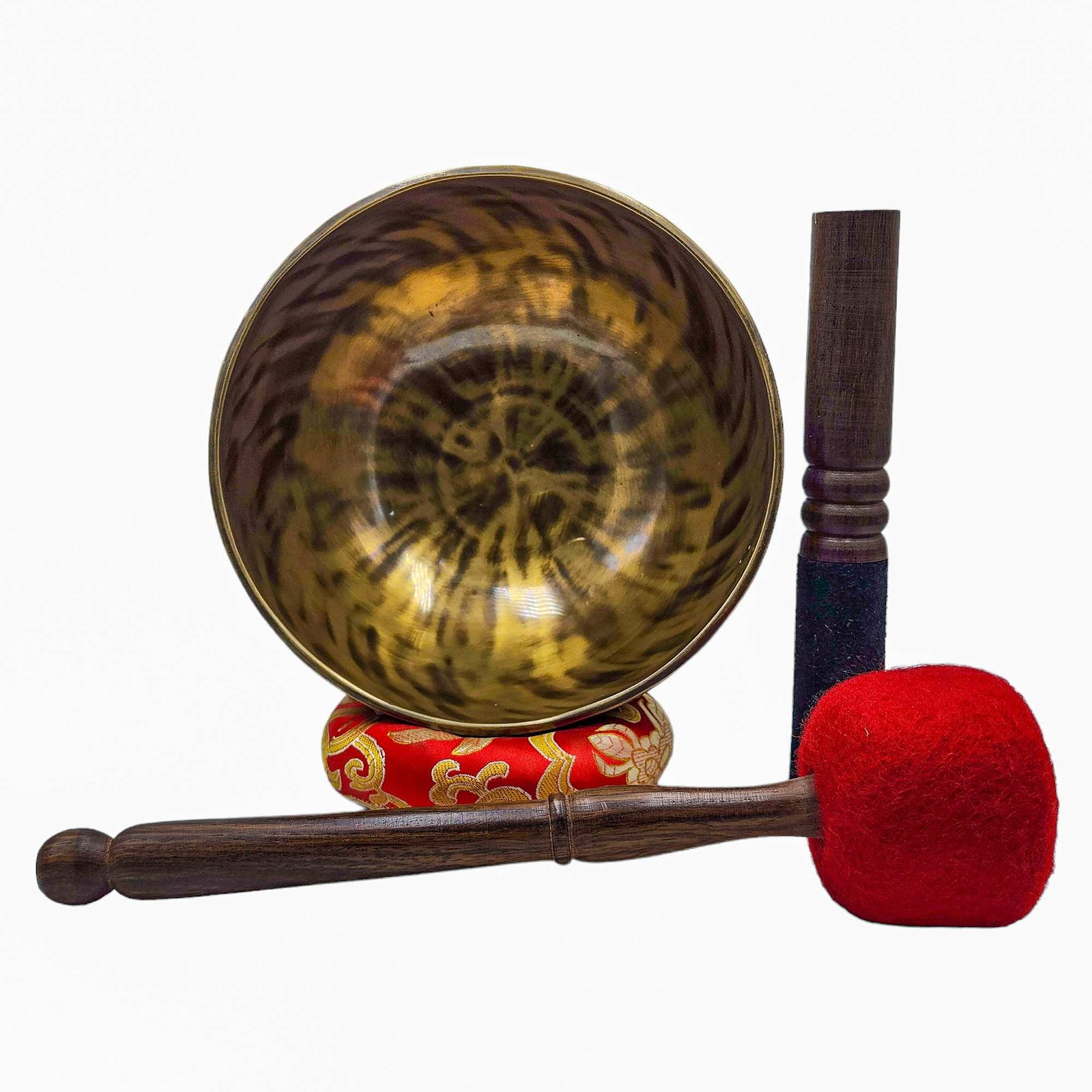 The Jambati Singing Bowl you are purchasing includes a cushion, a wooden playing mallet, and a felt-hitting mallet for playing the bowl. If you require additional accessories, you can browse the options above and purchase them separately. Should you have any further questions or need assistance, please don't hesitate to let us know. Read More