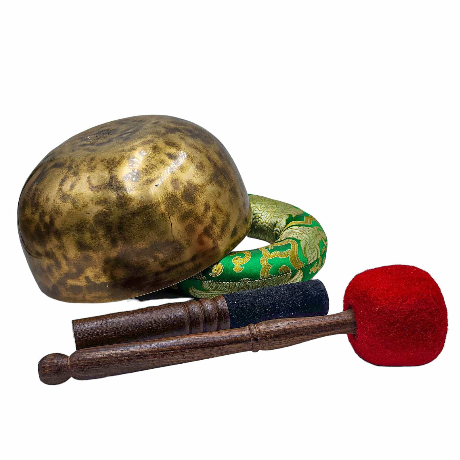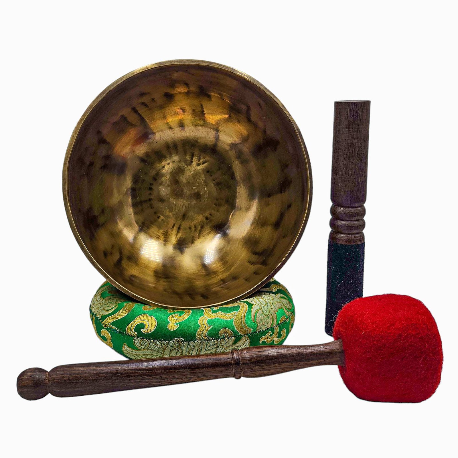 The Jambati Singing Bowl you are purchasing includes a cushion, a wooden playing mallet, and a felt-hitting mallet for playing the bowl. If you require additional accessories, you can browse the options above and purchase them separately. Should you have any further questions or need assistance, please don't hesitate to let us know. Read More