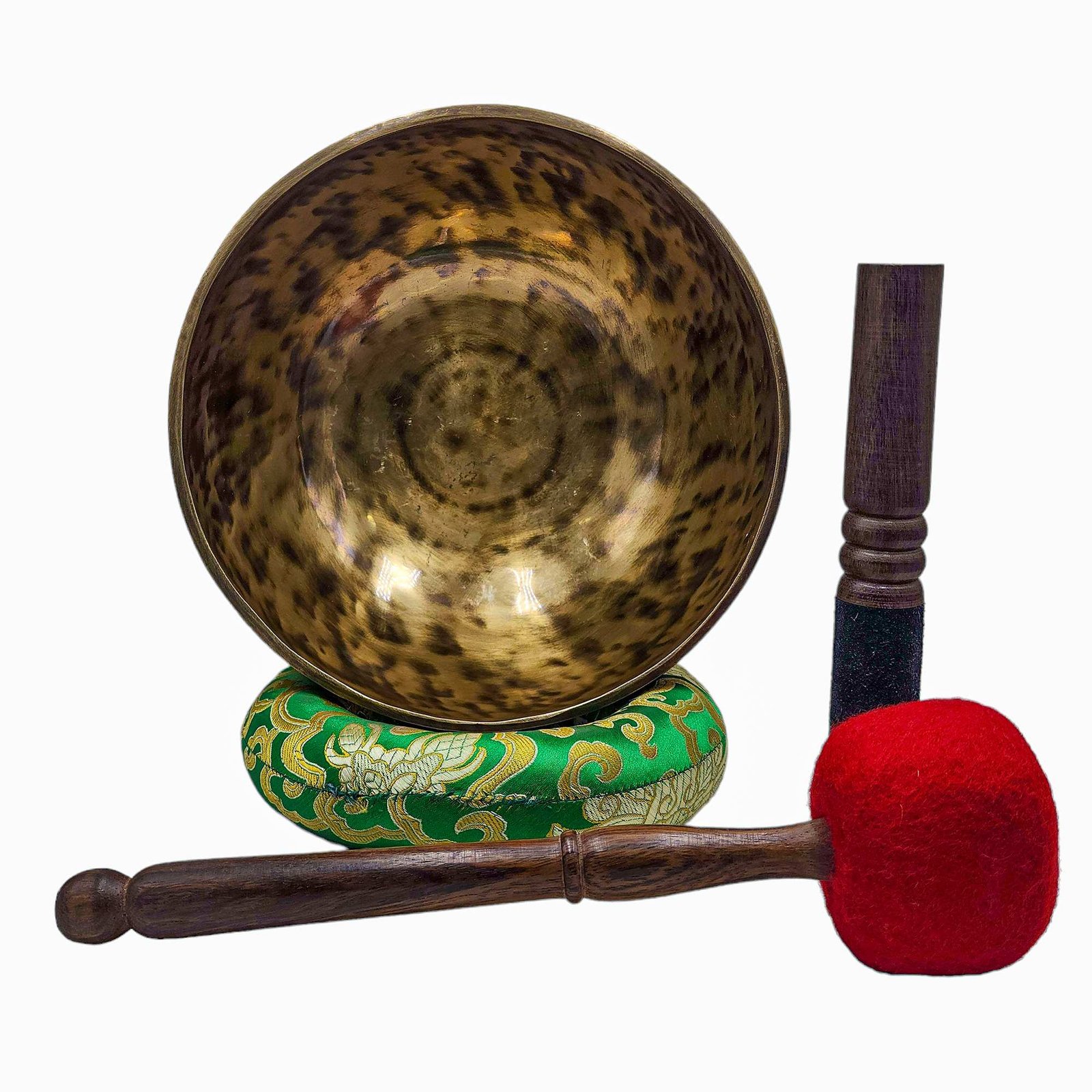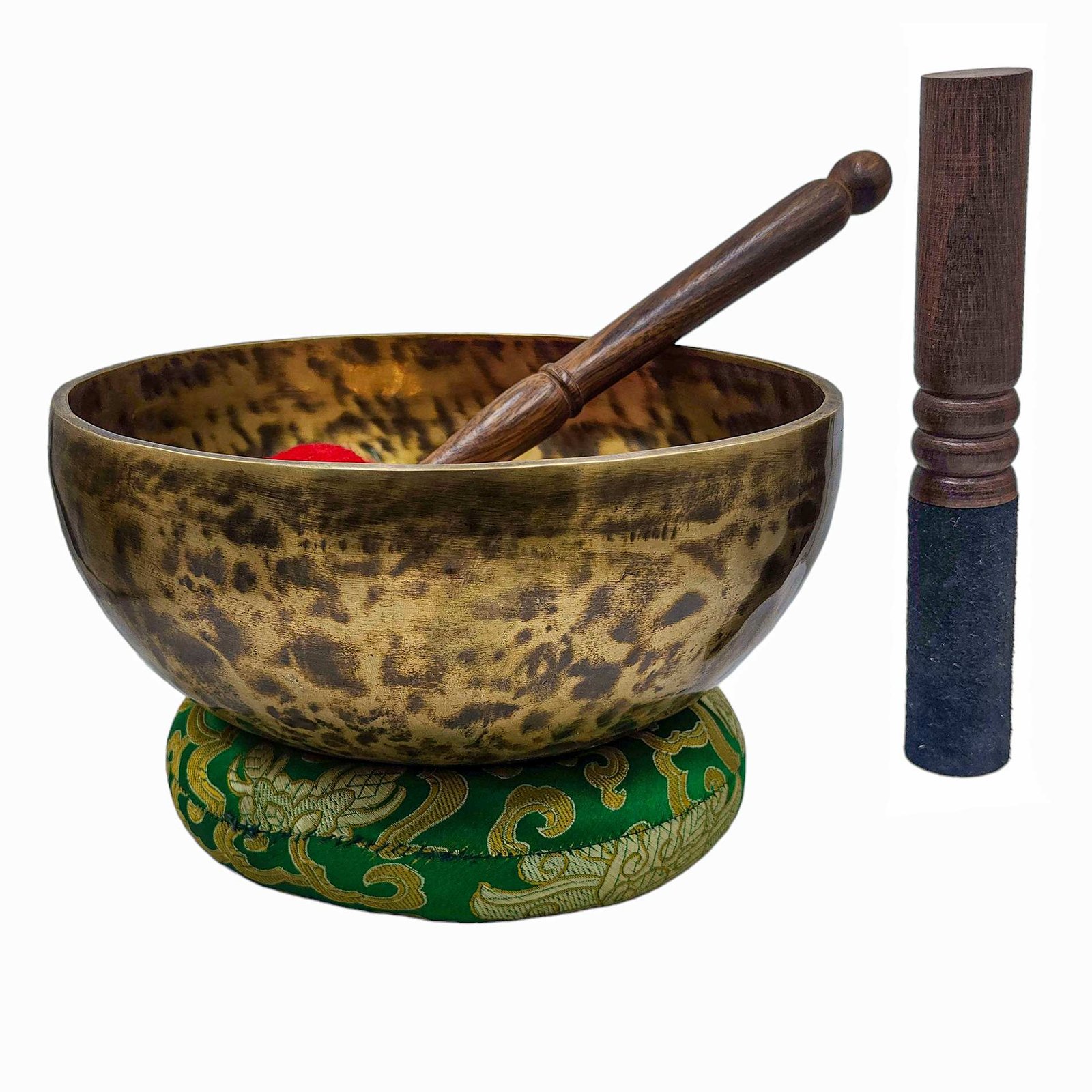 The Jambati Singing Bowl you are purchasing includes a cushion, a wooden playing mallet, and a felt-hitting mallet for playing the bowl. If you require additional accessories, you can browse the options above and purchase them separately. Should you have any further questions or need assistance, please don't hesitate to let us know. Read More