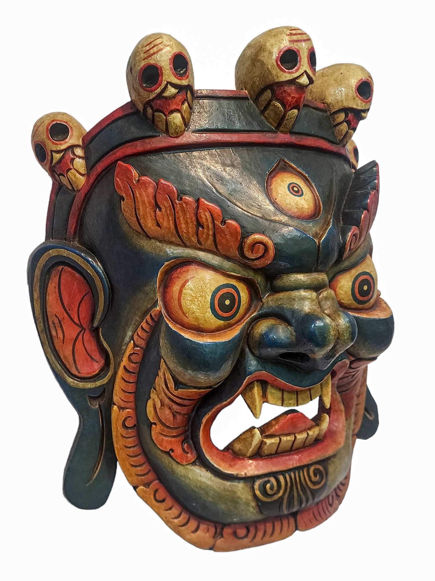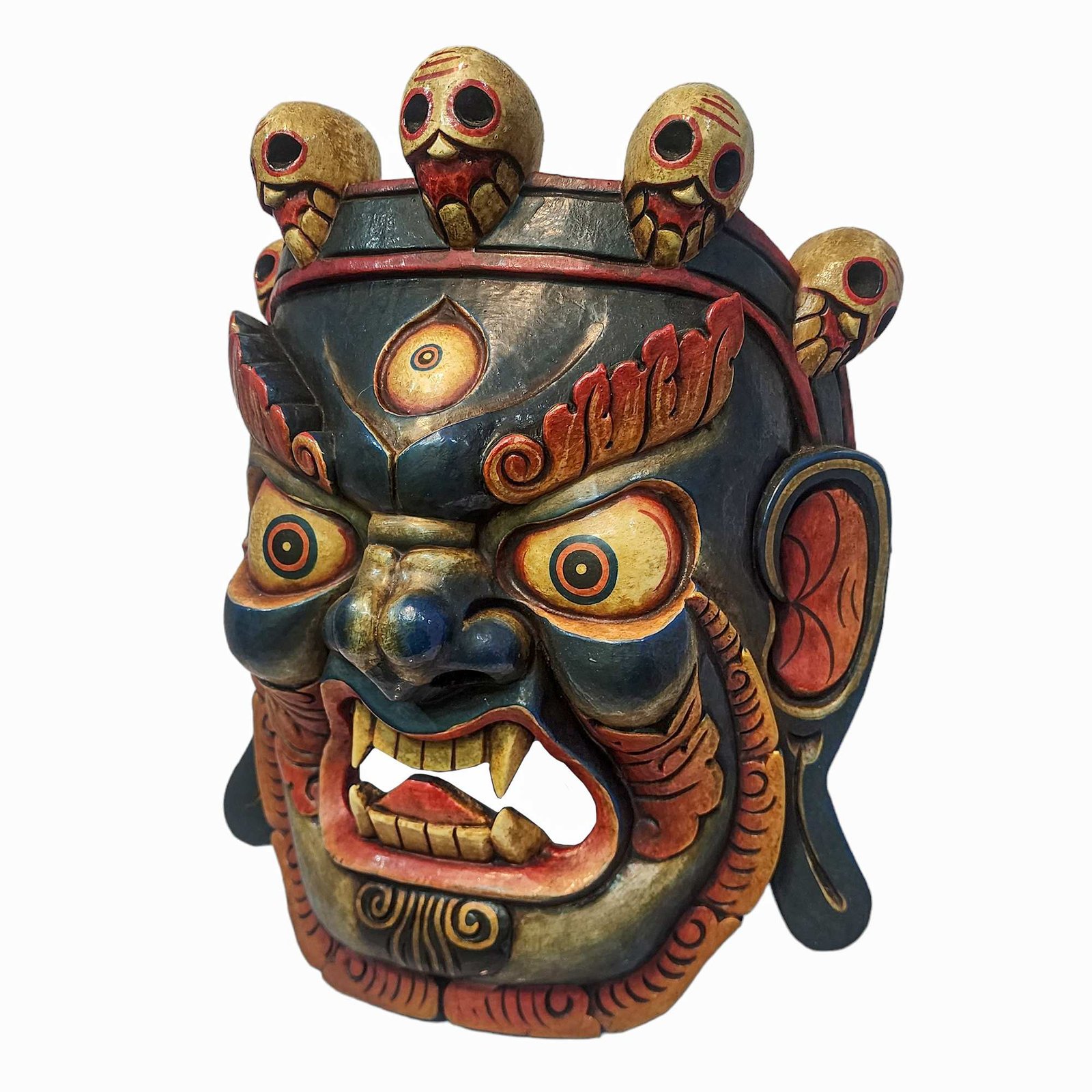 Bhairav, Handmade Wooden Mask, Wall Hanging, Painted Blue, Poplar Wood, Mahakala Two Arms , Fierce protector, destroys obstacles, guards the Dharma