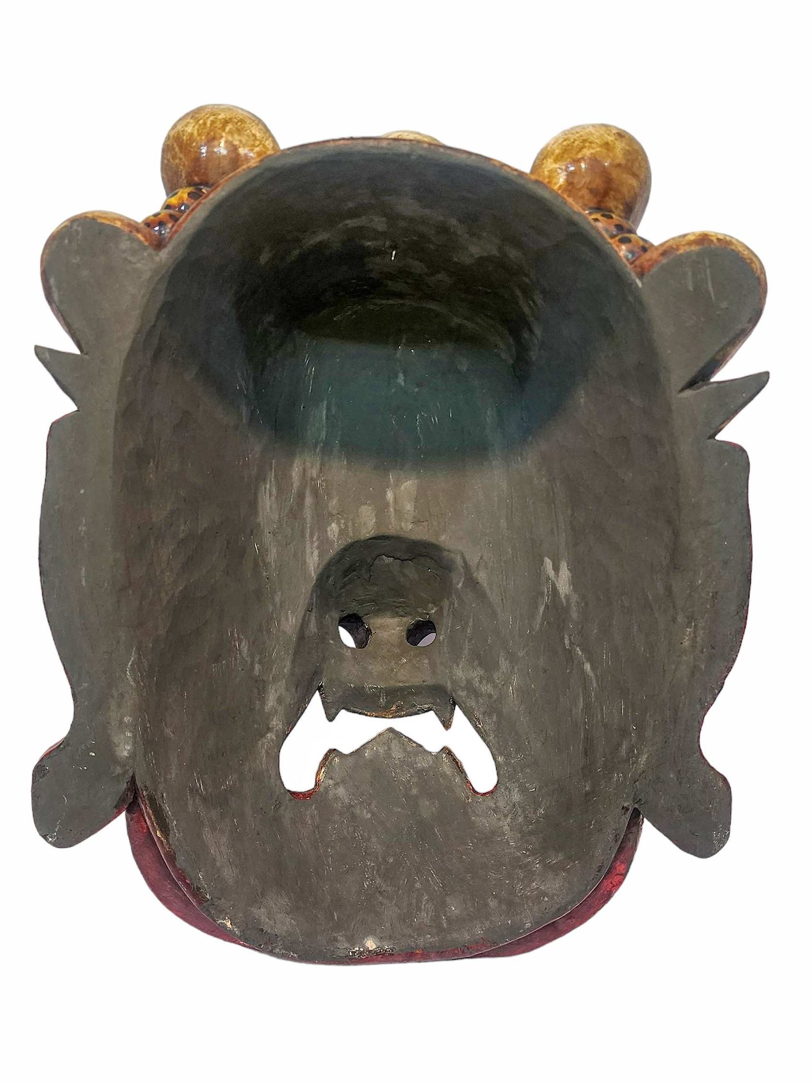 this Wooden Mask mask is Nepali handmade mask and we are Introducing our exquisite collection of Nepali handmade hand-carved wooden Buddhist masks and wall hangings, meticulously crafted by skilled artisans. Each piece in this collection reflects the rich cultural heritage and spiritual significance of Nepal. These masks and wall hangings are not just decorative pieces but hold deep symbolic meaning, making them perfect for adding an authentic touch to your living spaces or meditation rooms. Read More