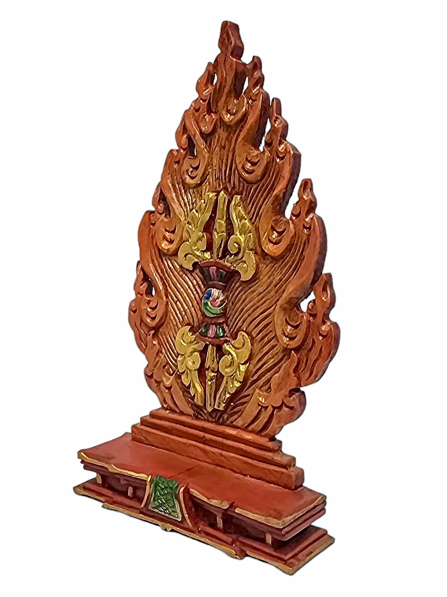 Wooden Altar Chesum Base, Throne For Small Statue Traditional Color, Vajra Carved