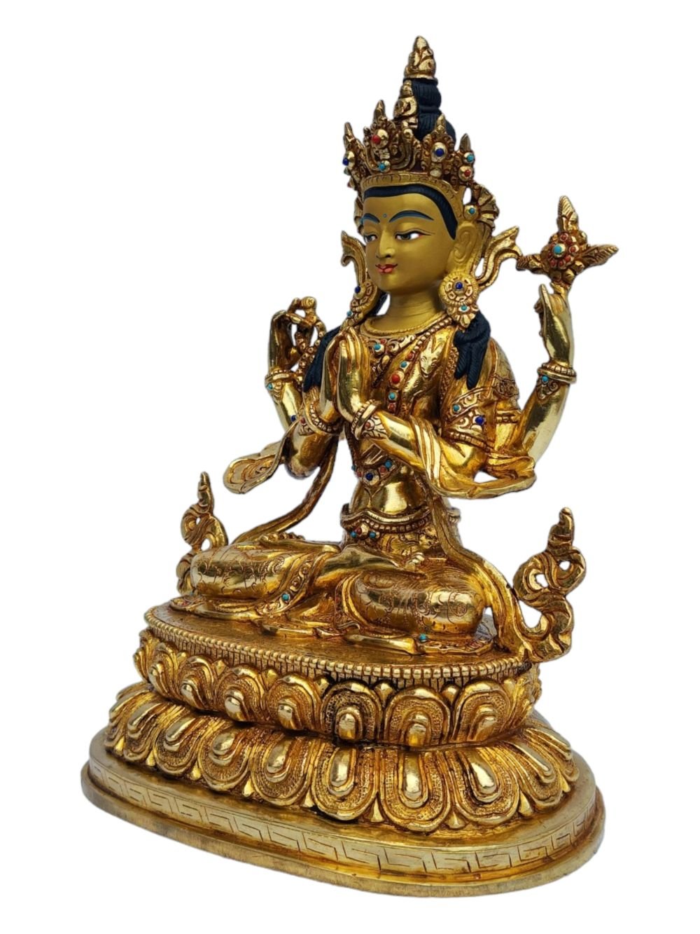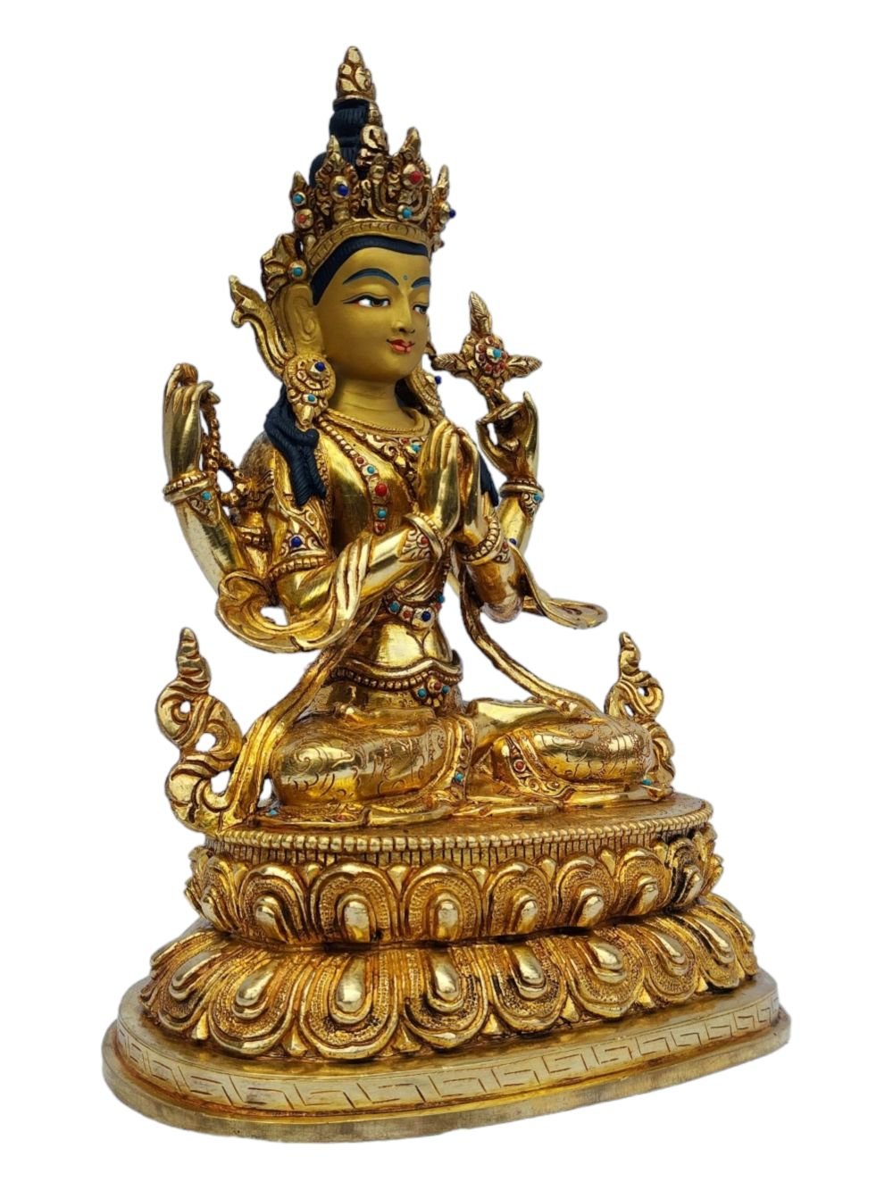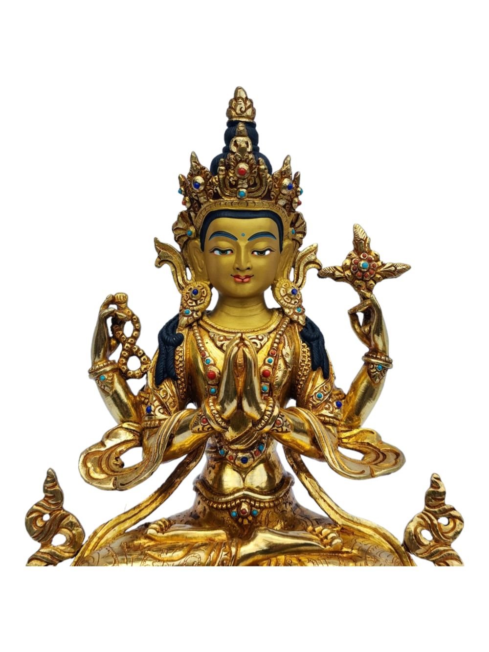Chenrezig, Buddhist Handmade Statue, Full Gold Plated, Painted Face , Bodhisattva of Compassion, Protector of All Beings
