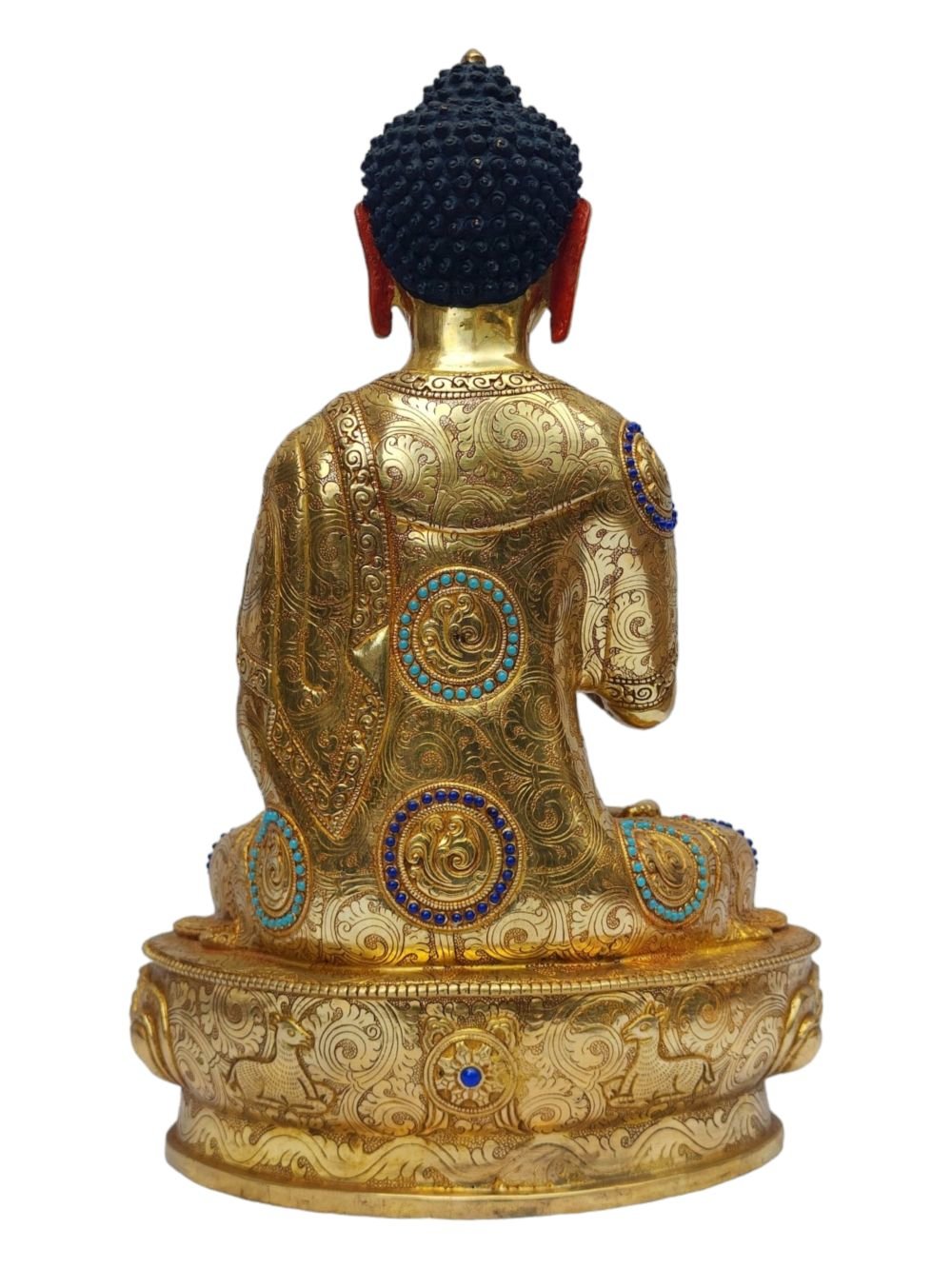 This Vairochana Buddha is finished with full gold plating. also known as mercury gold plating or fire gold plating. This traditional technique involves the application of a genuine layer of gold onto the Vairochana Buddha. Referred to as mercury gold plating, it is considered the correct and authentic form of gold plating in Nepal. Despite being more expensive than electroplating, this traditional mercury gold plating is gaining popularity again in Nepal. People are drawn to its authenticity, longevity, and the unmatched beauty it brings to the Vairochana Buddha. The resurgence of interest in this traditional form of gold plating reflects a growing appreciation for the craftsmanship and cultural heritage of Nepal Read More