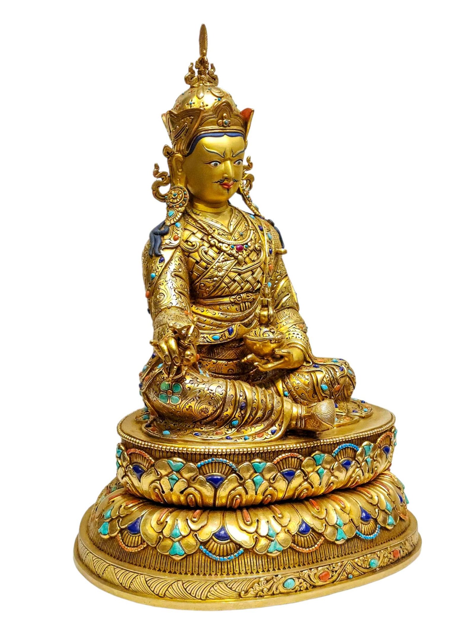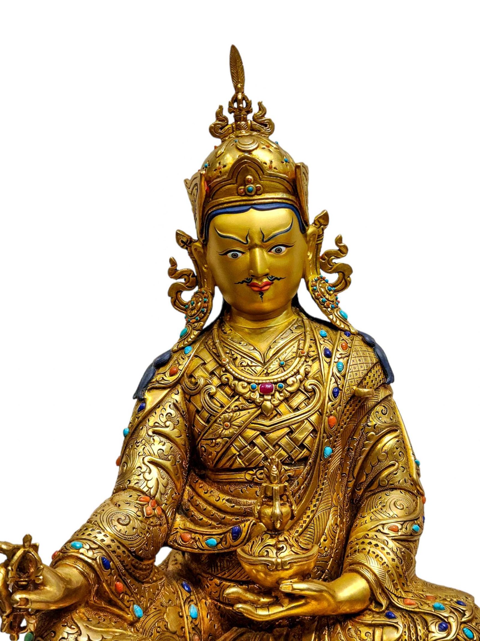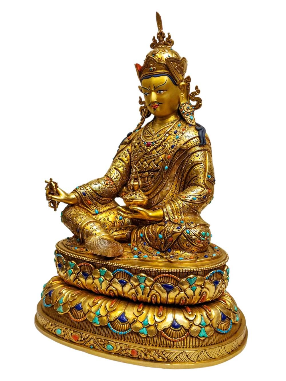 Padmasambhava Buddhist Handmade Statue, Full Gold Plated, Painted Face, High Quality , The lotus-born master, wisdom beyond time