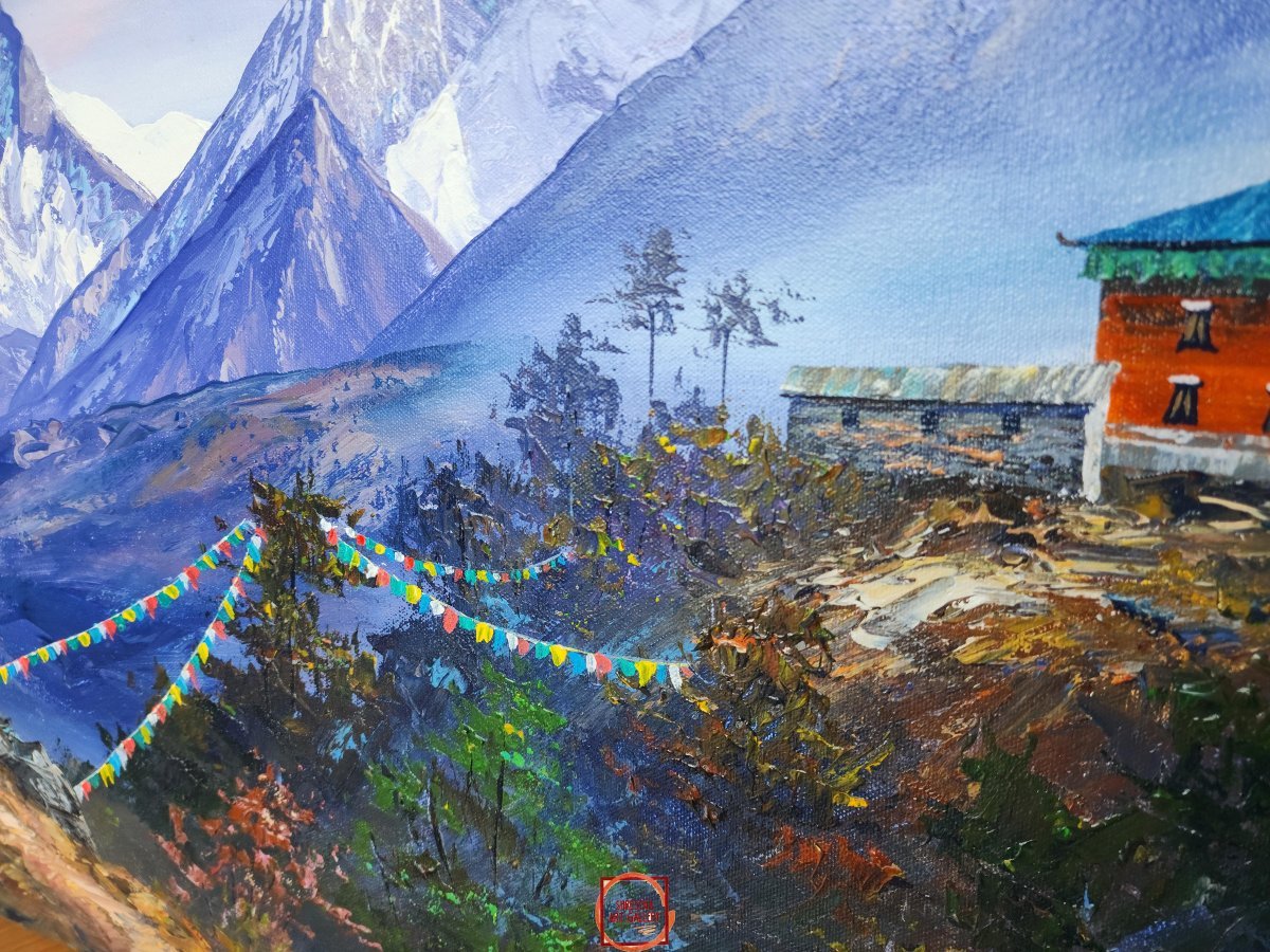 Overall, Nepali oil paintings are a beautiful and vibrant representation of Nepali culture and heritage, capturing the essence of this rich and diverse country. They are treasured works of art that carry deep meaning and significance for those who create and admire them.