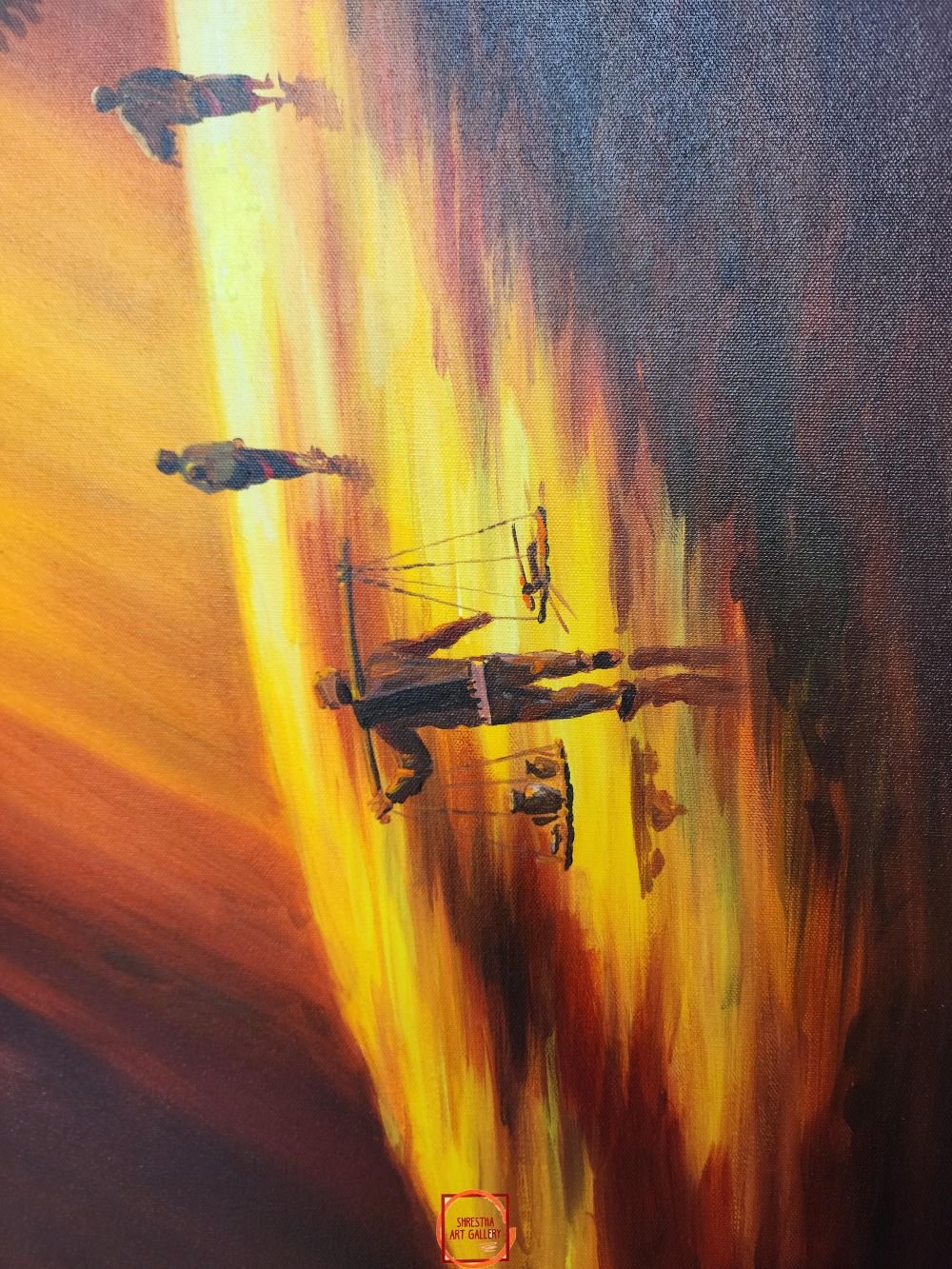 Oil Painting, Sunset Race Dawn Moment Modern Art Inspired Painting, By Mishri Man Chitrakar |