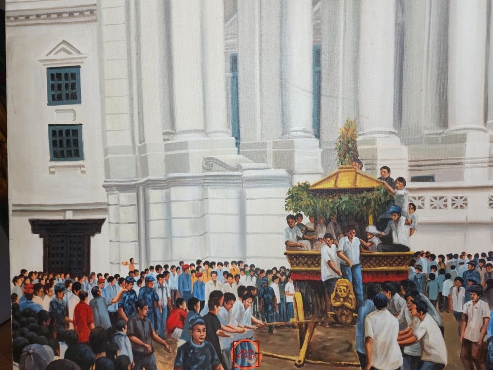 Oil Painting, Indra Jatra Bhairab Rath Charot Modern Inspired Heritage Art, By Mishri Man Chitrakar |