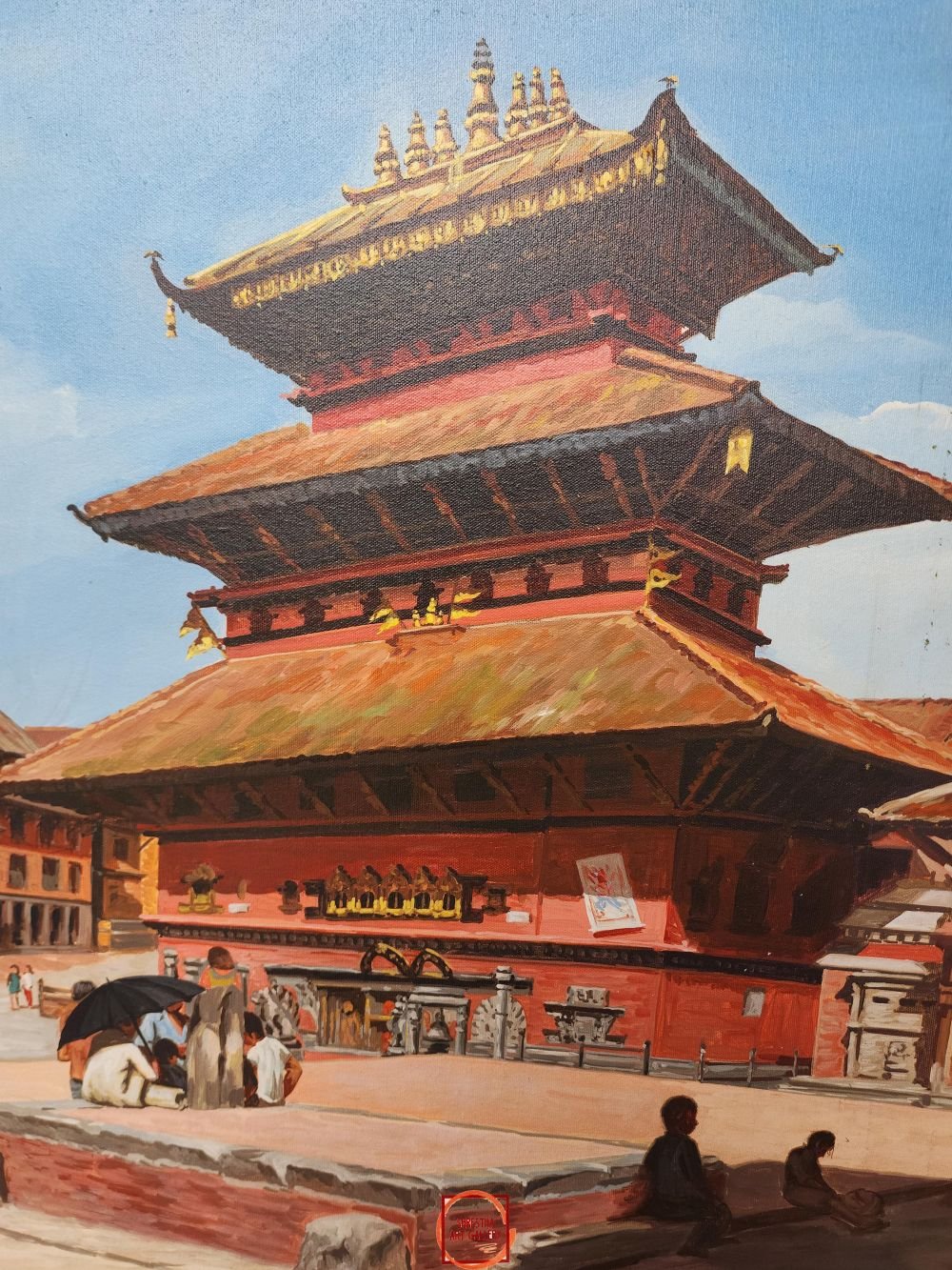 Temples and stupas: Nepal is home to numerous temples and stupas, which are important religious and cultural sites. Nepali oil paintings may depict these sites in great detail, capturing their intricate architecture and decorative elements.