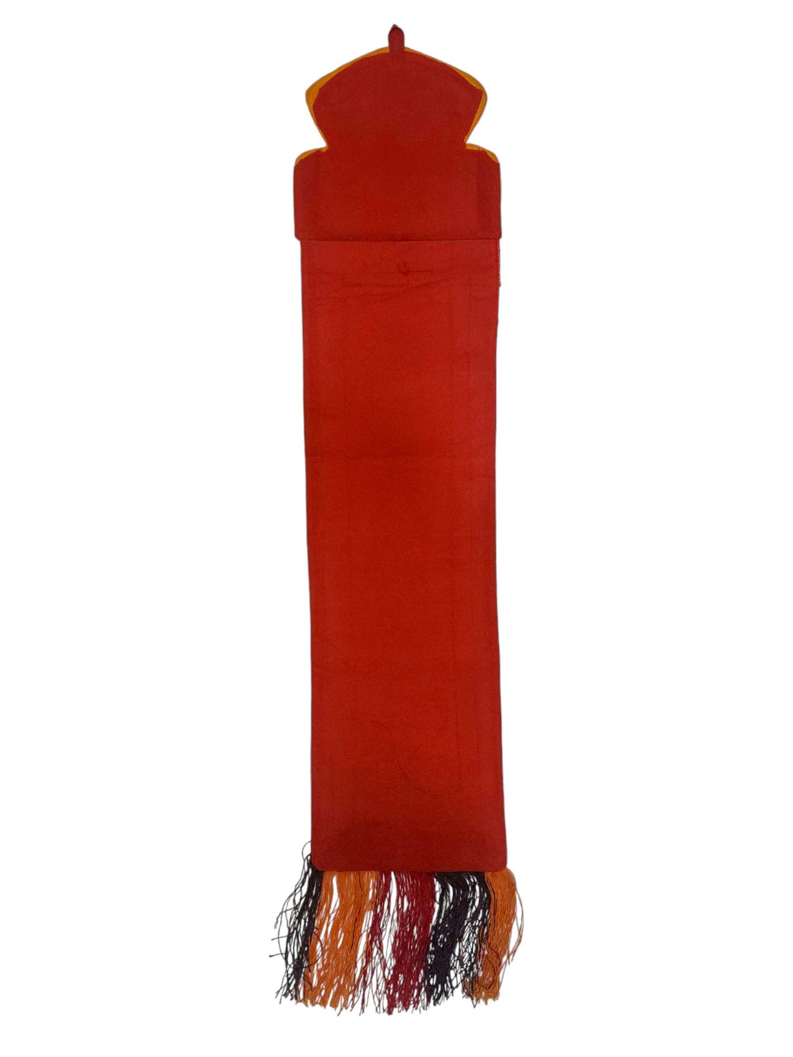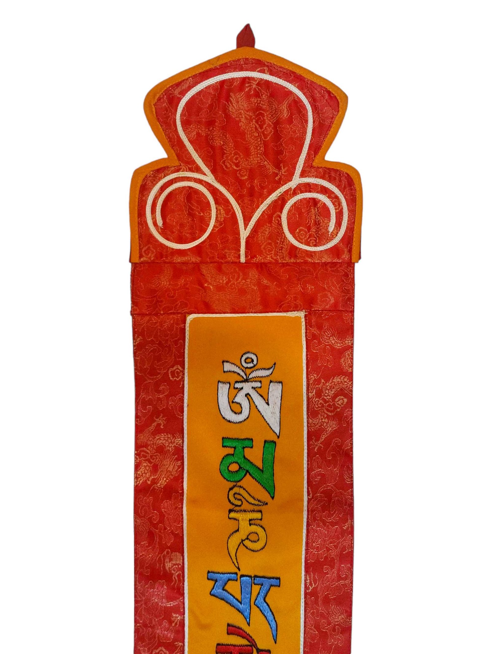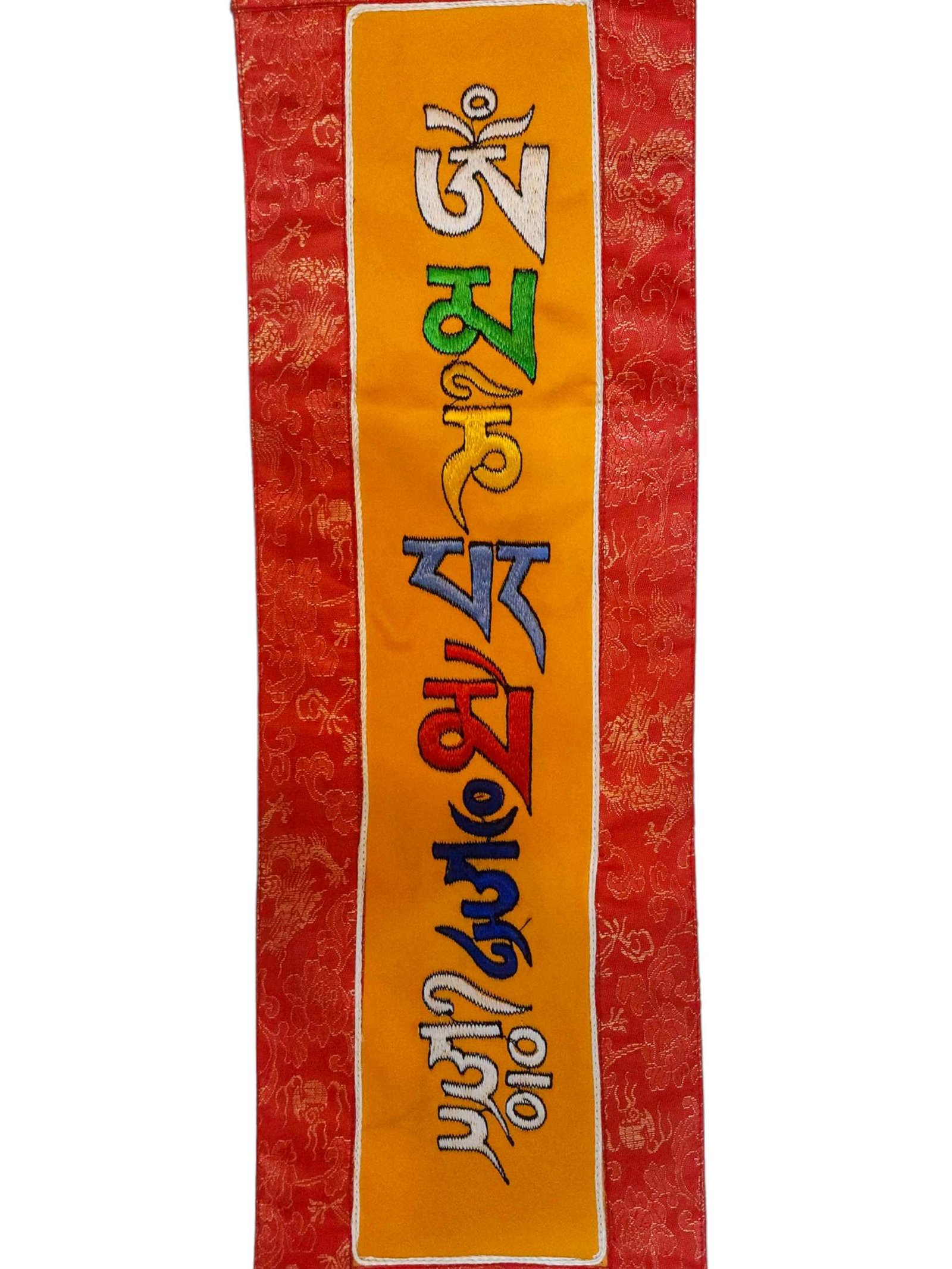 Tibetan Cochin Brocade Wall Hanging with Embroidered OM Mani Padme Hum , The mantra of compassion, invoking the blessings of Avalokiteshvara