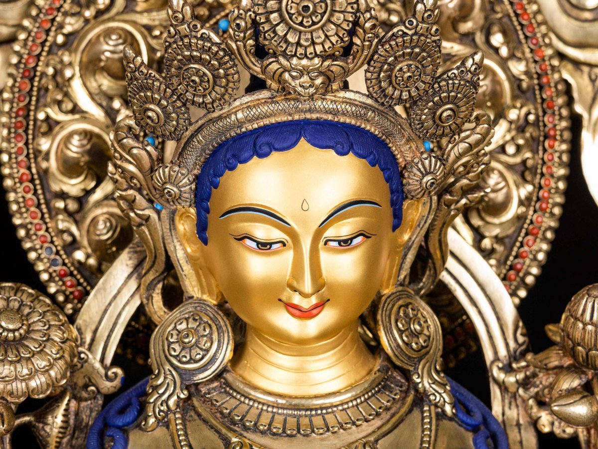 Moreover, the painted face serves as a symbolic and sacred ritual in Buddhism, preparing the statue for consecration and practice. The act of painting the face with gold in Buddhism holds deep meaning. It represents the intention to bring life and expression to the statue, imbuing it with a sense of vitality and presence. The application of gold on the face showcases the devotion and craftsmanship of the artisans, ensuring that every detail is carefully attended to honor the sacred essence of the Green Tara. Read More