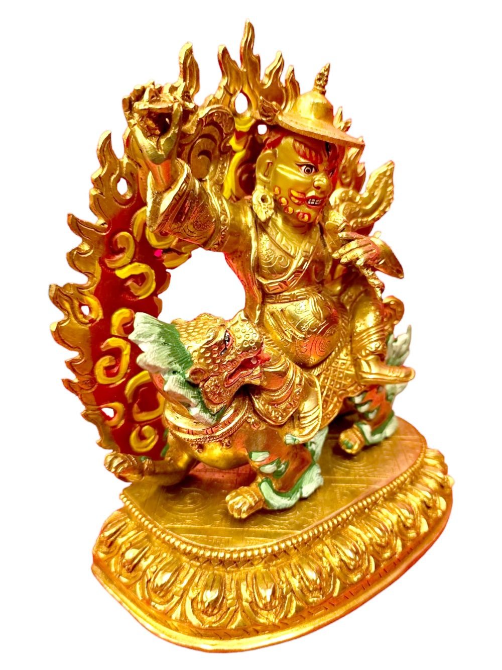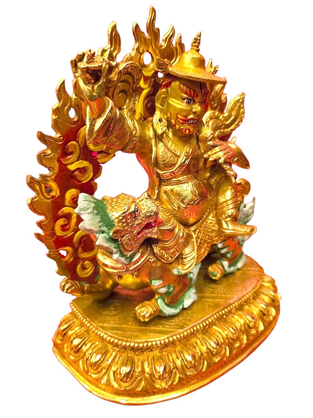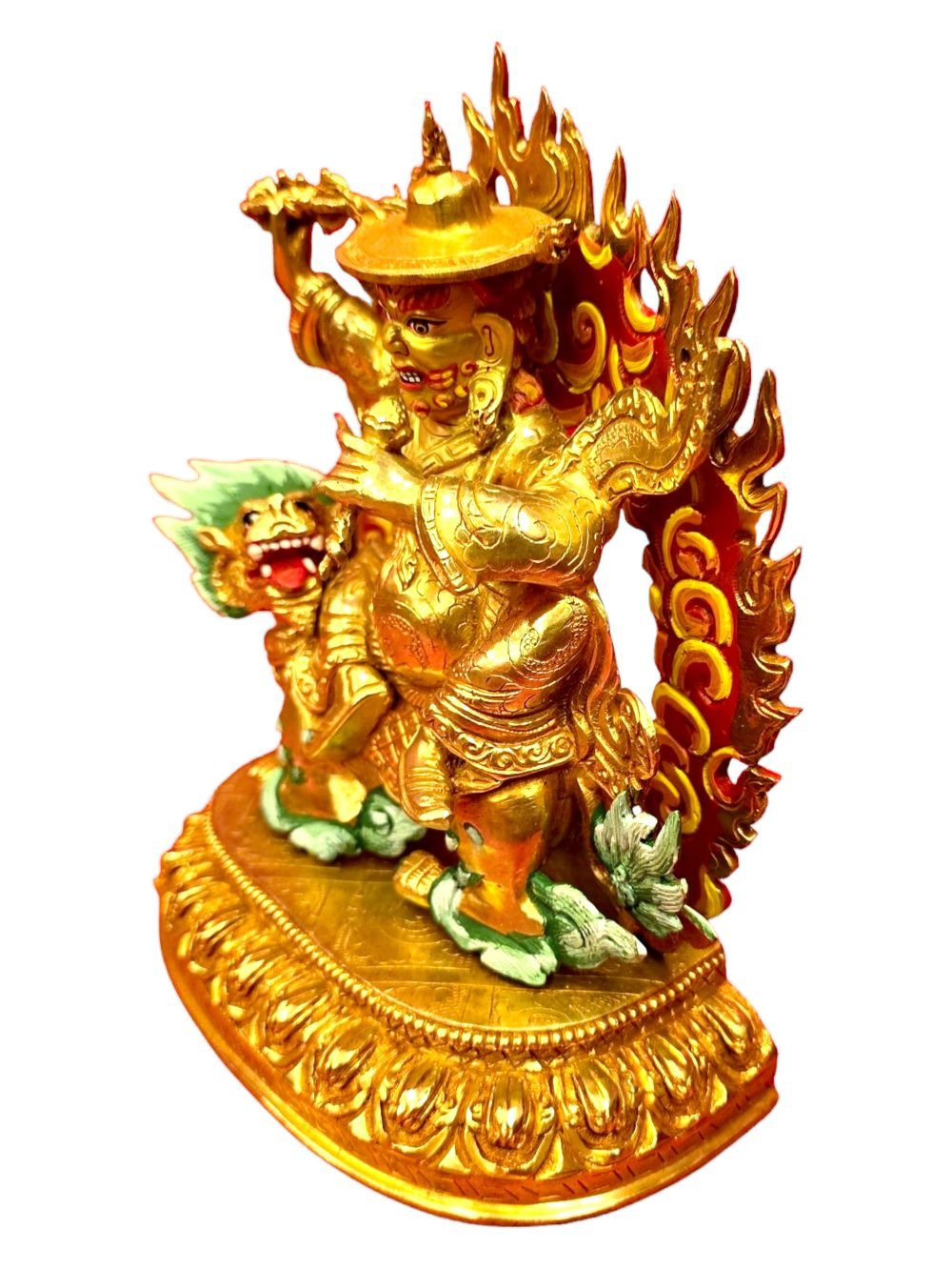 Dorje Legpa, Handmade Buddhist Statue, Full Gold Plated Painted Face , Protector of the Dharma, Defender of Buddhism and Overcomer of Obstacles