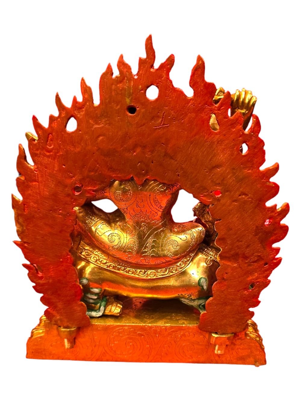 This Dorje Legpa is finished with full gold plating. also known as mercury gold plating or fire gold plating. This traditional technique involves the application of a genuine layer of gold onto the Dorje Legpa. Referred to as mercury gold plating, it is considered the correct and authentic form of gold plating in Nepal. Despite being more expensive than electroplating, this traditional mercury gold plating is gaining popularity again in Nepal. People are drawn to its authenticity, longevity, and the unmatched beauty it brings to the Dorje Legpa. The resurgence of interest in this traditional form of gold plating reflects a growing appreciation for the craftsmanship and cultural heritage of Nepal Read More